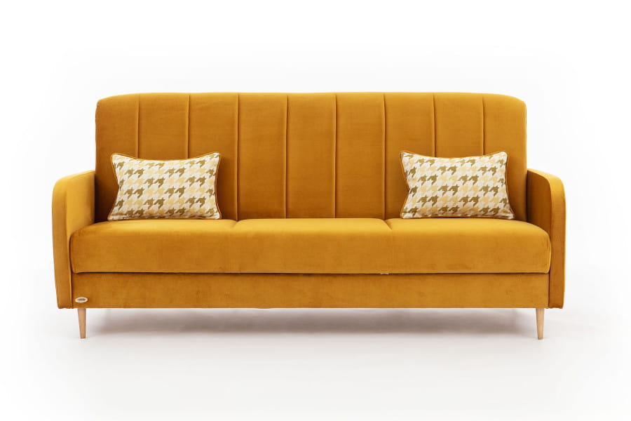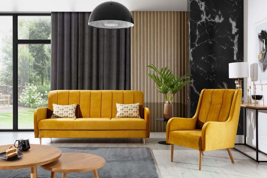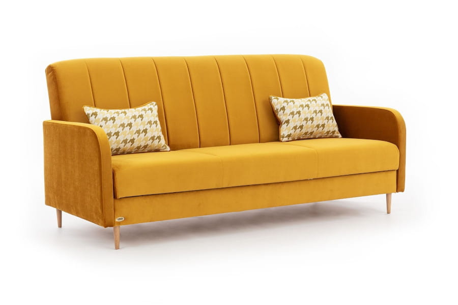 Komplet wypoczynkowy Loretto to mebel uniwersalny, będziesz go mógł wykorzystać zarówno w nowoczesnych, jak i bardziej klasycznych wnętrzach. Wykorzystaj potencjał wyrazistych barw w salonie przyjemną strefę wypoczynkową, w której przyjemnie jest przesiadywać. Wersalka to mebli znany od lat ze swej wielofunkcyjności i praktyczności. Z jednej strony pozwalają na relaks w ciągu dnia służąc jako zgrabna kanapa nie zajmująca wiele miejsca, a nocą mogą przeobrazić się w wygodne łóżko. Loretto zapewni wypoczynek całej rodziny i sprawdzi się nawet w niewielkich przestrzeniach pokoju dziennego, ale też w pokoju młodzieżowym czy gabinecie. Mebel może pełnić funkcję łóżka w razie odwiedzin gości. Rozłożysz ją za pomocą mechanizmu wersalkowego klik-klak. Powierzchnia spania wynosi 189x124 cm. Dużym udogodnieniem jest pojemnik na pościel znajduje się pod siedziskiem i przyda się na przechowanie dodatkowego posłania. Siedzisko oraz oparcie wykonano ze sprężyn falistych i wypełniono pianką.