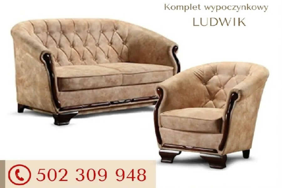 Komplet wypoczynkowy Ludwik sofa z dwoma fotelami to doskonała propozycja do różnorodnych wnętrz. Szalenie wygodna forma siedziska i oparcia dostarczy Ci komfortu i wygody, których potrzebujesz każdego dnia. Doskonała jakość wykończenia w postaci drewna dębowego i bukowego świadczy o niebywale wysokiej trwałości tych mebli. Szeroka gama tkanin, skór i kolorystyki materiałów pozwoli Ci stworzyć model, który będzie idealnie dopasowany do Twoich oczekiwań. Duże, wygodne oparcie gwarantuje niebywałą wygodę, a sam subtelny, luksusowy styl będzie mocnym akcentem we wnętrzu.