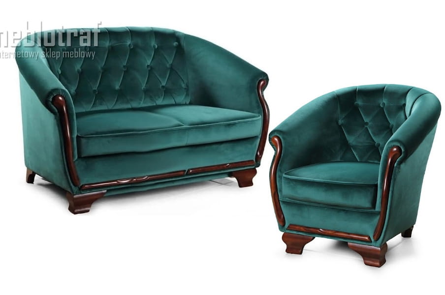 - zestaw wypoczynkowy: sofa rozkładana z dwoma fotelami