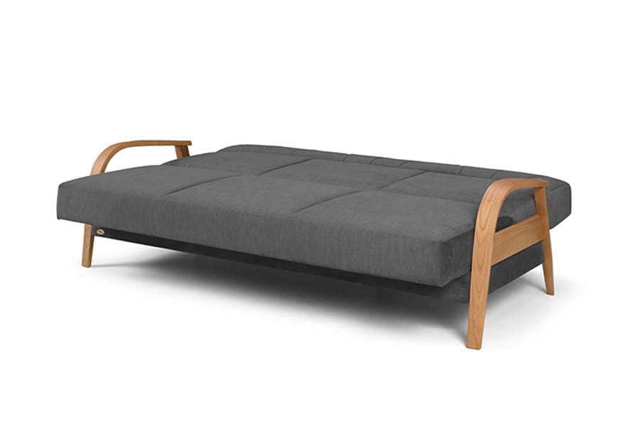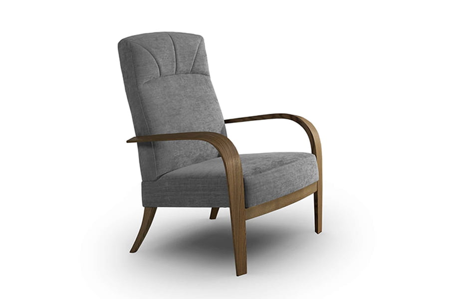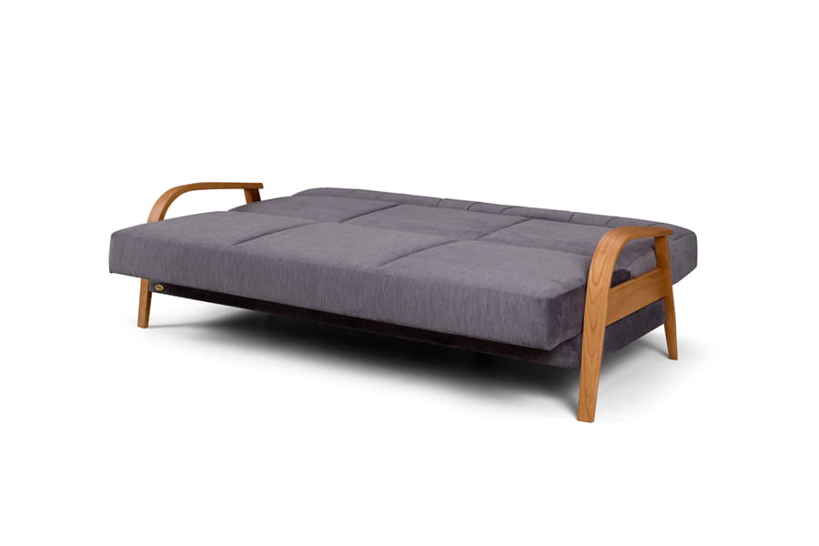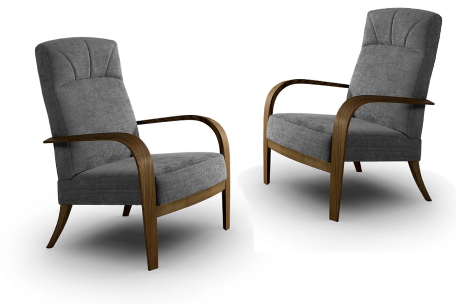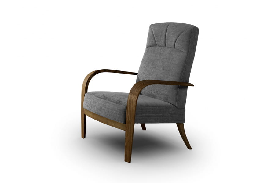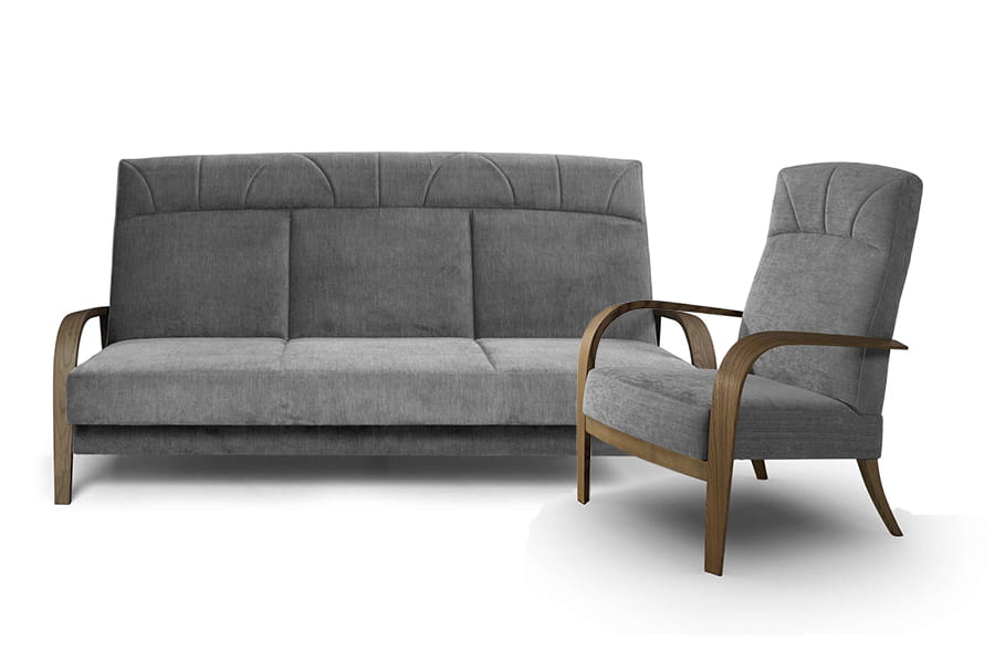 Zestaw mebli wypoczynkowych Lagossa, obejmujący wersalkę oraz dwa fotele ma klasyczny, prosty kształt z charakterystycznymi, drewnianymi podłokietnikami, które jednocześnie stanowią otwarte boki mebla. Eleganckie przeszycia widoczne na oparciu i siedzisku nadają dekoracyjnego charakteru w ciekawy sposób przełamując kolorystykę tapicerki.