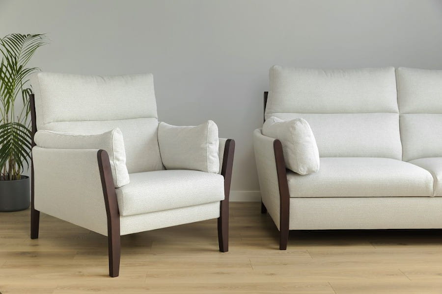 Komplet wypoczynkowy Mana osobowa to mebel wypoczynkowy, który idealnie pasuje do klasycznego salonu. Stylowo wykończone detale, łagodnie poprowadzona linia, efektowne nóżki - to cechy, dzięki którym propozycja ta zachwyca i pozytywnie inspiruje. Do wykonania sofy Mana użyto elementów z naturalnego drewna oraz stylową tkaninę, której kolor oraz efektowny wzór zależy wyłącznie od Twoich preferencji. Sofa z funkcją spania .