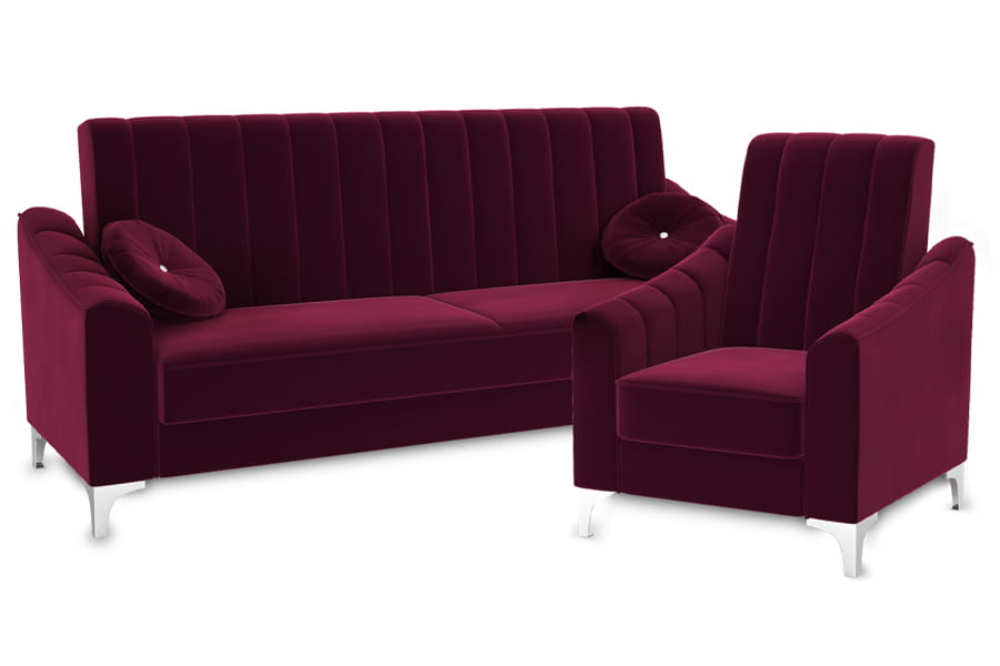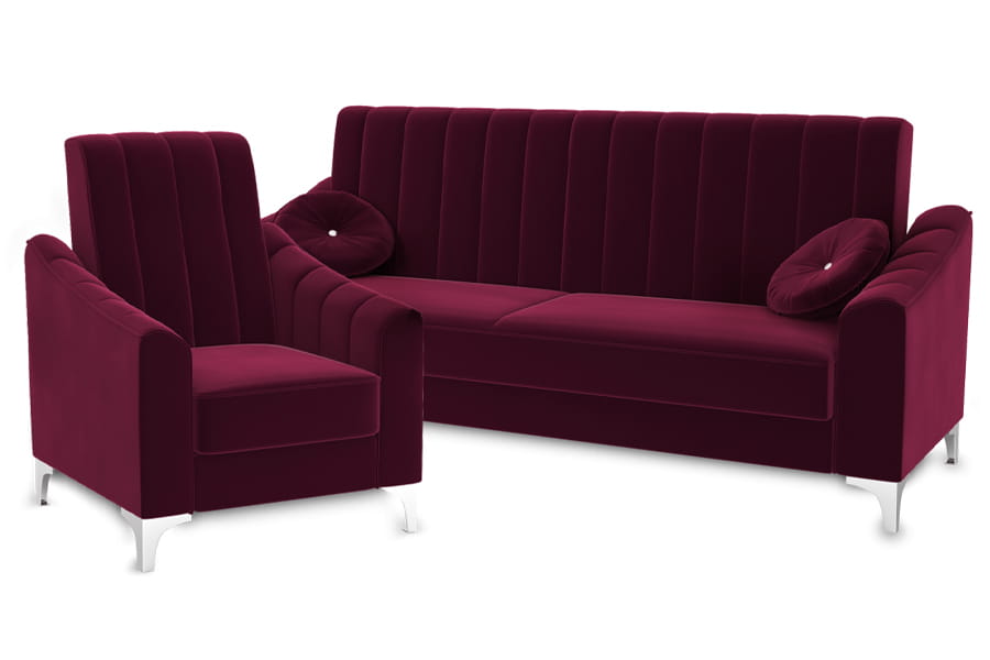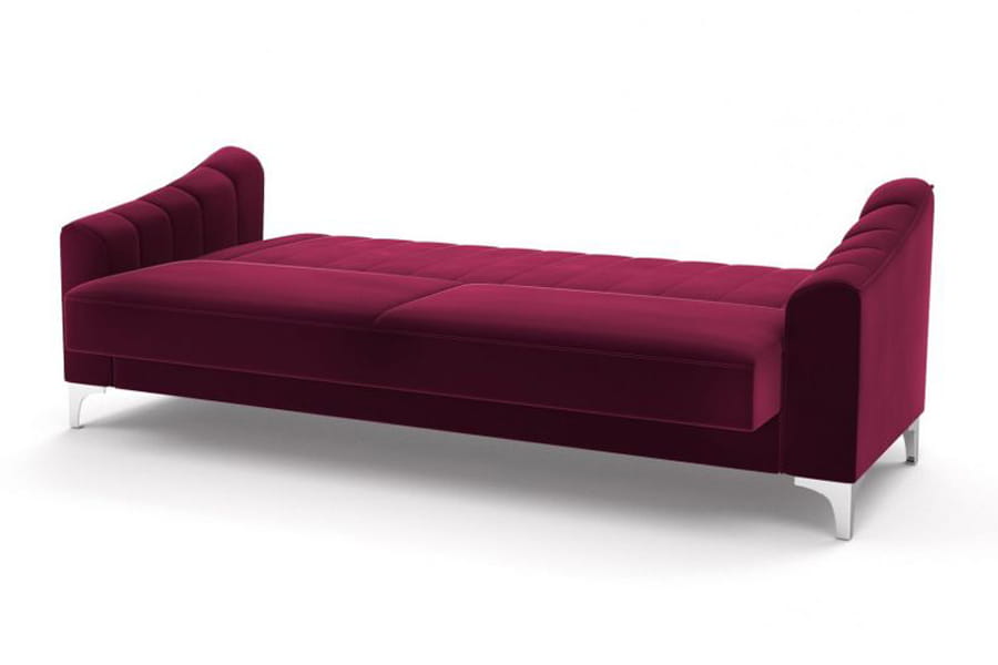 Zestaw wypoczynkowy Marco składający się z kanapy i dwóch wygodnych foteli. Kanapa Marco z funkcją spania zaprojektowaliśmy z myślą o osobach, którym zależy zarówno na wygodnym relaksie w ciągu dnia, jak i komfortowym wypoczynku w nocy. Szeroka gama tkanin imponuje różnorodnością kolorów, wzorów i właściwości, która sprawia, że możesz spersonalizować wygląd sofy tak, aby odpowiadał Twoim marzeniom. Dzięki prostej i geometrycznej formie ten model prezentuje się zachwycająco w minimalistycznych wnętrzach. Wysokie i wąskie nogi metalowe sprawiają, że kanapa nabiera lekkości, więc doskonale uzupełni nawet małe pokoje. Wybierając tkaninę, możesz zdecydować się na oryginalne połączenie jednolitego obicia kanapy z poduchami ozdobnymi. Zestawiaj je jak chcesz – w zbliżonych odcieniach albo w kontrastowych kolorach. Wspomniane poduchy ozdobne możesz układać tak, aby wspierały Cię podczas odprężania się w ulubionej pozycji, która stanie się jeszcze wygodniejsza. Wysokie nogi pozwalają na łatwe czyszczenie podłogi pod kanapą, a przestronny pojemnik może służyć do przechowywania nie tylko pościeli.