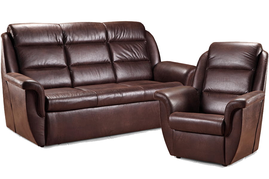 - skórzany zestaw wypoczynkowy: sofa 3RP z dwoma fotelami