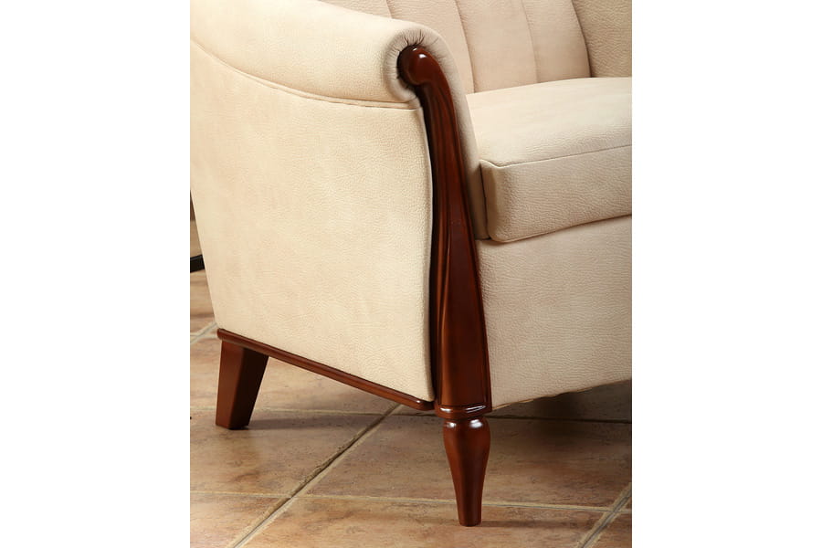 - mebel posiada wysokie oparcie, miękkie, zaokrąglone podłokietniki