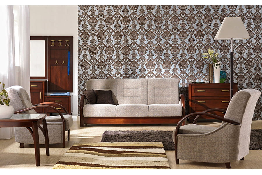 - zestaw wypoczynkowy: wersalka z 2 fotelami