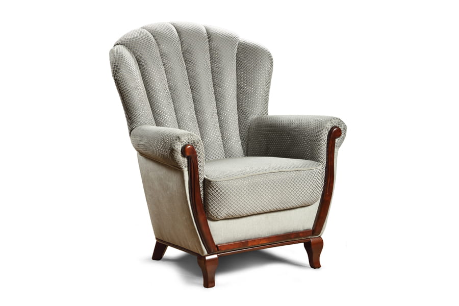- mebel posiada wysokie oparcie, miękkie, zaokrąglone podłokietniki