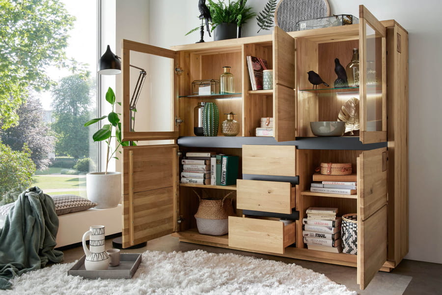 - Przeszklona część to doskonałe miejsce do ekspozycji modnych dekoracji i pamiątek.