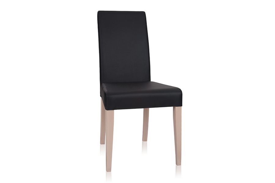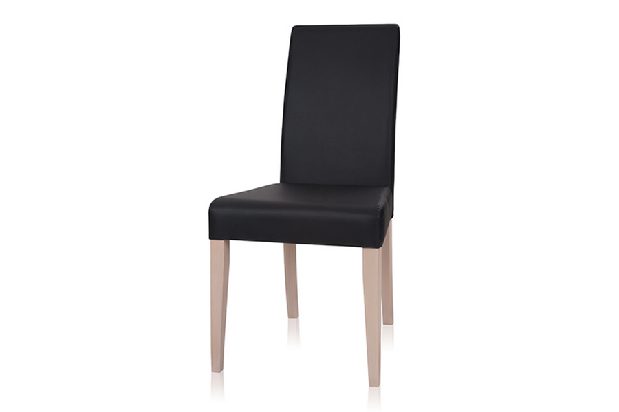 Krzesło tapicerowane Caro wykonane z litego drewna bukowego, dzięki czemu jest trwałe i stabilne. Ciekawie zaprojektowana bryła z wysokim oparciem płynnie przechodzącym w wygodne siedzisko posiada stylowe, długie nóżki. Do wyboru mamy kilka grup tkanin i kilka kolorów drewnianego stelaża. W siedzisku zastosowane są sprężyny faliste.