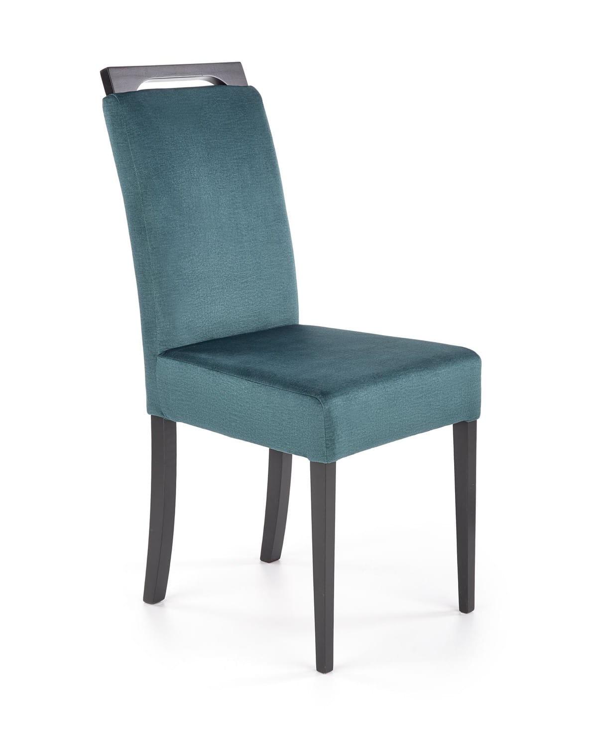 Klasyczne krzesło CLARION 2 łączy w sobie zarówno prostotę, jak i elegancję. Obicie z ciemno zielonej tkaniny welurowej tworzy ciepły i przytulny klimat, zarazem doskonale kontrastując z czarną ramą krzesła. Cztery czarne, proste nogi usytuowane symetrycznie w narożnikach, wykonane z litego drewna bukowego, dodają meblowi klasy i charakteru. Na zwieńczeniu wysokiego oparcia znajduje się praktyczny, podłużny uchwyt, który przebiega przez całą szerokość oparcia, dodając meblowi funkcjonalności, a jednocześnie podkreślając wyrafinowany styl krzesła. Krzesło CLARION 2 podłokietników jest nie tylko bardzo praktyczne, ale także stanowi wysublimowany, stylowy element dekoracyjny, na który zwróci z pewnością uwagę każdy, kto ceni sobie klasyczną elegancję i prostotę. Mebel świetnie sprawdzi się w aranżacjach nowoczesnych, ale także klasycznych, o bardziej tradycyjnym charakterze. Będzie doskonałym dodatkiem do jadalni lub salonu, ale także do eleganckiej kuchni.
