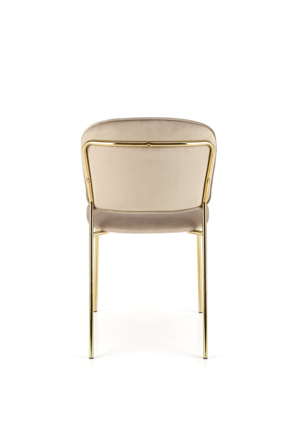 Krzesło K499 o minimalistycznej formie. Jest ono praktycznym, a zarazem eleganckim dodatkiem do wnętrz urządzonych w stylu glamour. Mebel może być użytkowany w kuchni, ale także w jadalni. Jego neutralne wykończenie sprawia, że będzie pasował do wielu aranżacji. Swój subtelny wygląd krzesło zawdzięcza jasnemu odcieniowi tapicerki oraz delikatnie zarysowanej podstawie utworzonej z czterech cienkich, a przy tym stabilnych nóżek. Powstały one ze stali chromowanej i mają złote wybarwienie. Doskonale współgrają z tapicerką mebla, którą jest tkanina welurowa w kolorze różowym. Materiał użyty do obicia nie tylko pięknie się prezentuje, nadając krzesłu klasy, ale jest też przyjemny w dotyku. Mebel posiada średniej wielkości, lekko zaokrąglone oparcie. Widać na nim pionowe przeszycia, które pełnią rolę dekoracyjną, nadając meblowi szyku. Stylowy, a zarazem stonowany wygląd krzesła K499 pozwala na zestawienie go z oryginalnie prezentującymi się stołami, np. takimi o nietypowej, masywnej podstawie.