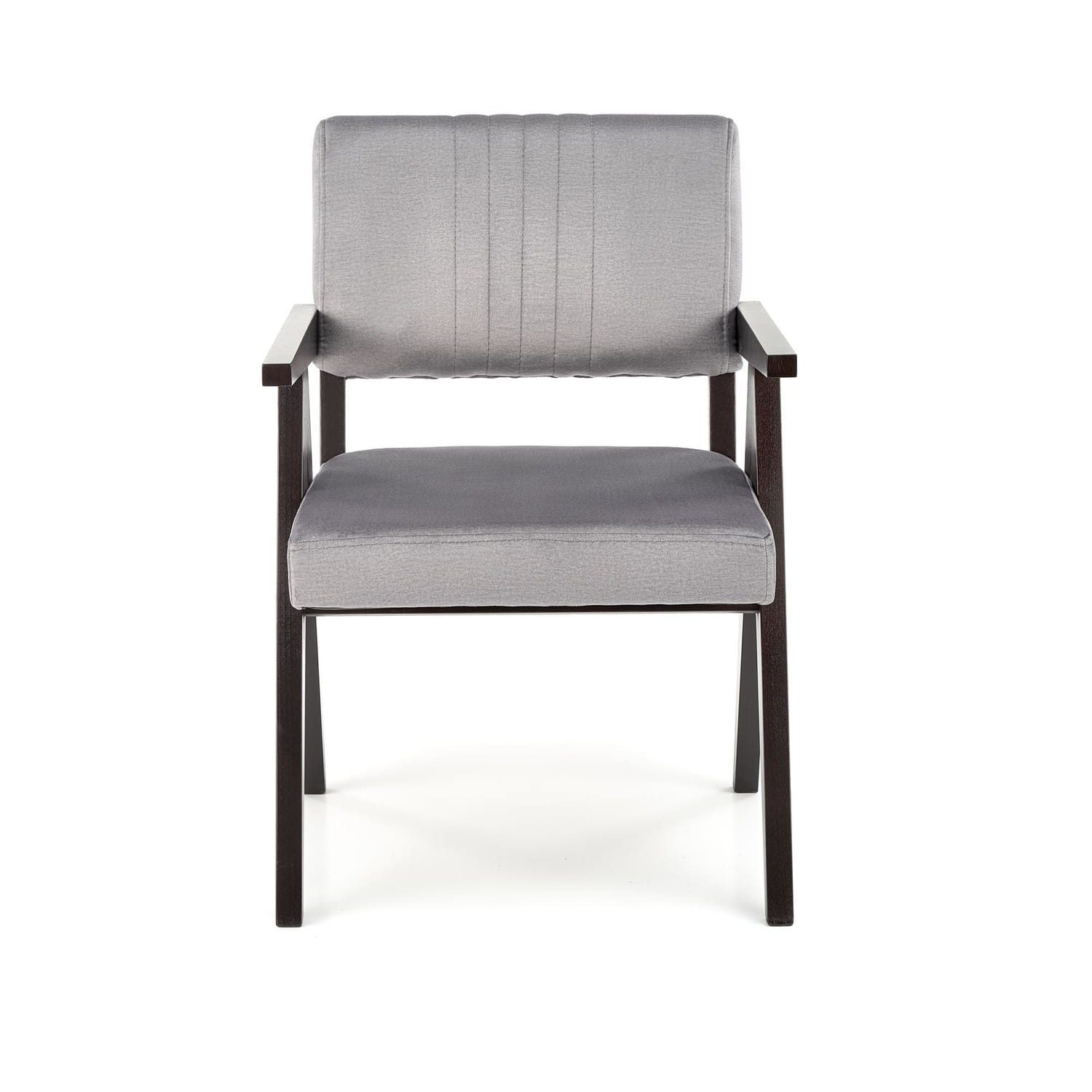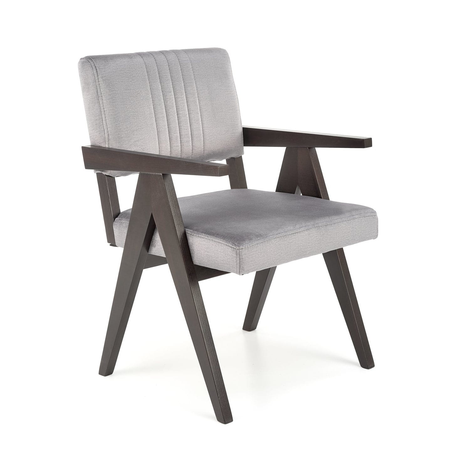Krzesło Memory nawiązującym do stylu retro. Jego ciekawy design idzie w parze z praktycznością. Mebel posiada duże, prostokątne siedzisko oraz średniej wielkości oparcie, na którym widoczne są pionowe, ozdobne przeszycia. Do tapicerowania krzesła użyto tkaniny welurowej Monolith 85. Przyjemne w dotyku, miękkie, pięknie mieniące się obicie nadaje mu ekskluzywnego charakteru. Bordowe wykończenie sprawia, że prezentuje się elegancko. Stelaż mebla wykonano z litego drewna bukowego w kolorze heban. Dzięki wyposażeniu w podłokietniki łatwiej przybrać odpowiadającą pozycję przy stole. Masywna podstawa nie tylko zapewnia stabilność konstrukcji, ale także nadaje całości intrygującego wyglądu. Nietypowe ustawienie nóg wyróżnia Memory na tle innych krzeseł. Mebel może być użytkowany w wielu pomieszczeniach, w jadalni, kuchni, ale także w salonie. Najlepiej wypadnie we wnętrzach urządzonych w stylu vintage. Wraz ze stołem utworzy praktyczną przestrzeń do spożywania posiłków. Może także stanowić część przytulnego kącika wypoczynkowego.