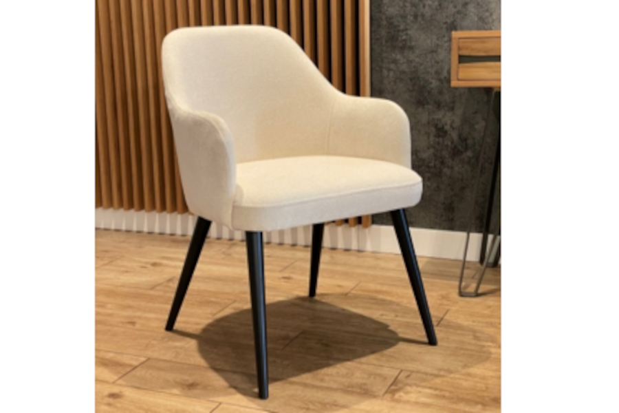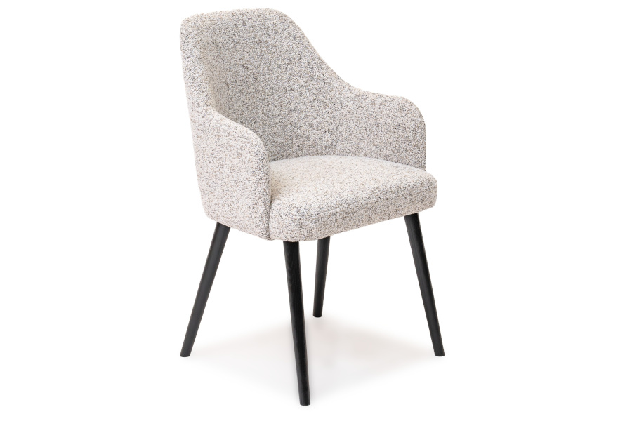Ma fantastyczny, uniwersalny wzór, dlatego idealnie pasuje do nowoczesnych jadalni. Mebel przyciąga wzrok elementami wykonanymi ze szlachetnego, udekorowanego naturalnym usłojeniem, drewna. Są nimi smukłe nóżki oraz zwieńczenie oparcia, wzbogacone o dodatkowy otwór, który ułatwi jego przenoszenie. Krzesło w zależności od Twoich upodobań, może być pokryte tkaniną lub skórą, które dopełnią jego efektowną formę.