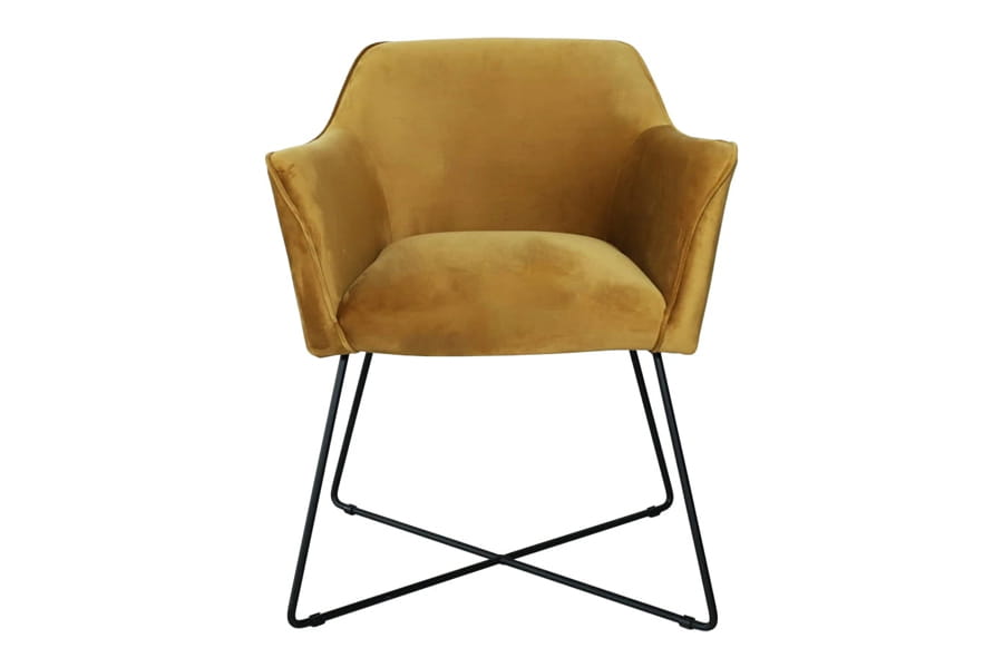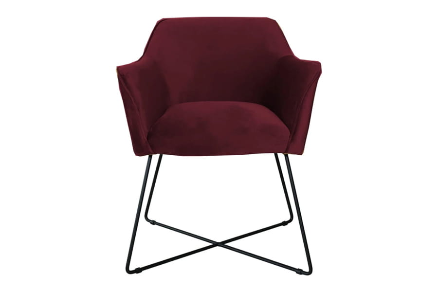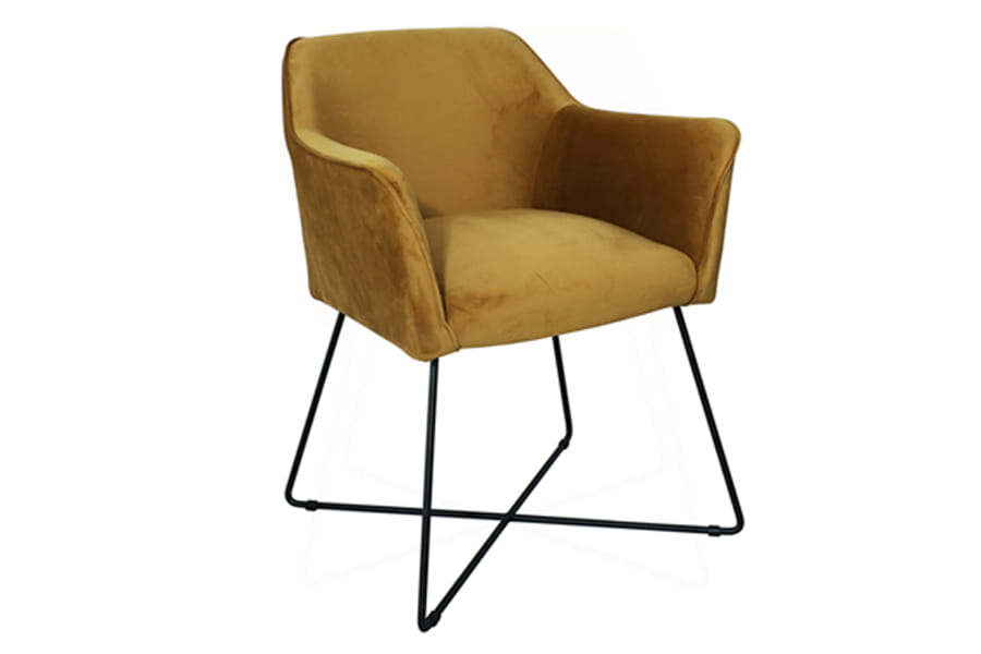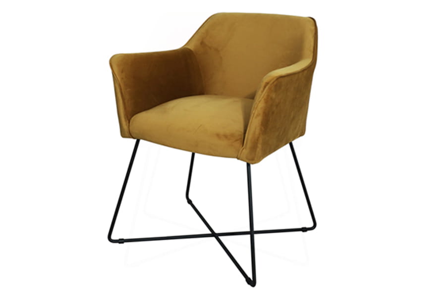 Krzesła tapicerowane Scarlet posiada dekoracyjną metalową, czarną podstawę. Tapicerowane siedzisko (wyłącznie w tkaninie) posiada wypełnienie na bazie sprężyny falistej typu B oraz pianki poliuretanowej. Krzesło Scarlet wyróżnia się dzięki eleganckim, wysokim i wąskim podłokietnikom. Szeroka gama kolorystyczna wysokiej jakości tkanin.