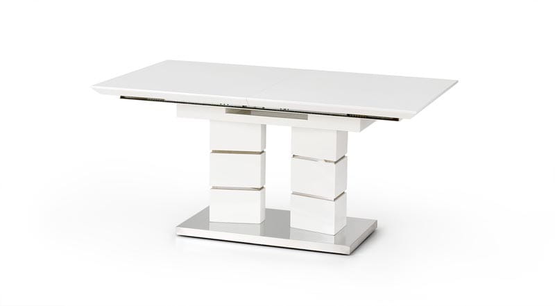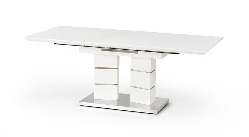 stół rozkładany, wymiary: 160÷200/90/75 cm, materiał: MDF lakierowany / stal nierdzewna, kolor: biały
