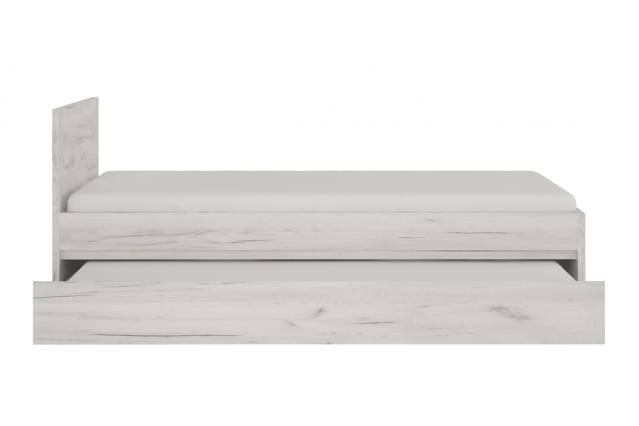 - Łóżko wyposażone jest w funkcjonalną szufladę wysuwaną na rolkach, która z powodzeniem może służyć jako dodatkowe miejsce do spania. Zmieści się w niej materac o wymiarach: 80 x 190cm oraz wysokości do 15cm. Rekomendowany wybór materaca z oferty Meble Wójcik - Tukan.