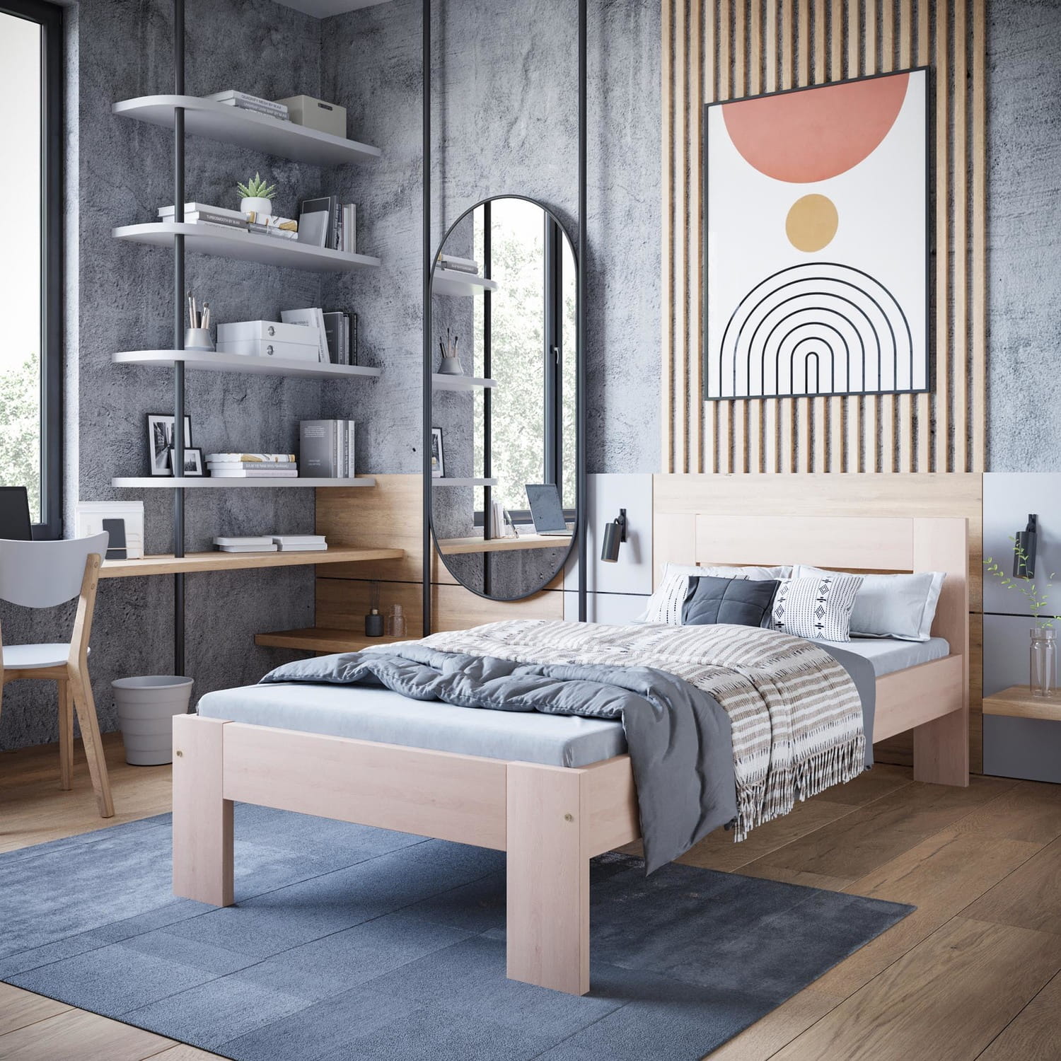wymiary: 98/205/87 cm; materiał: drewno lite - bukowe, kolor: naturalny; * łózko bez materaca, w opcji materac POLARIS 90 lub SYRIUSZ 90