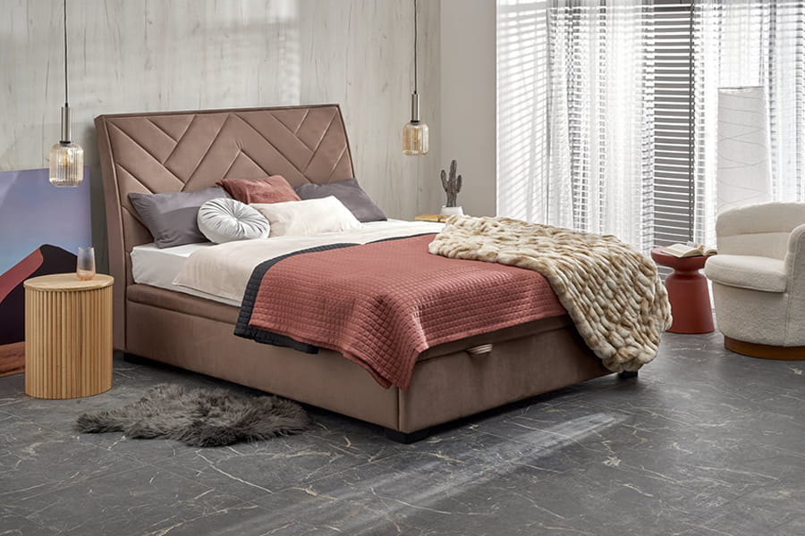 Łóżko sypialniane CONTINENTAL 1 160 cm - beżowy (jodełka) tap. Monolith 09