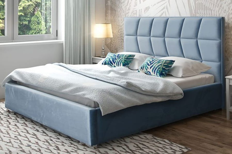 - łóżko tapicerowane w tkaninie