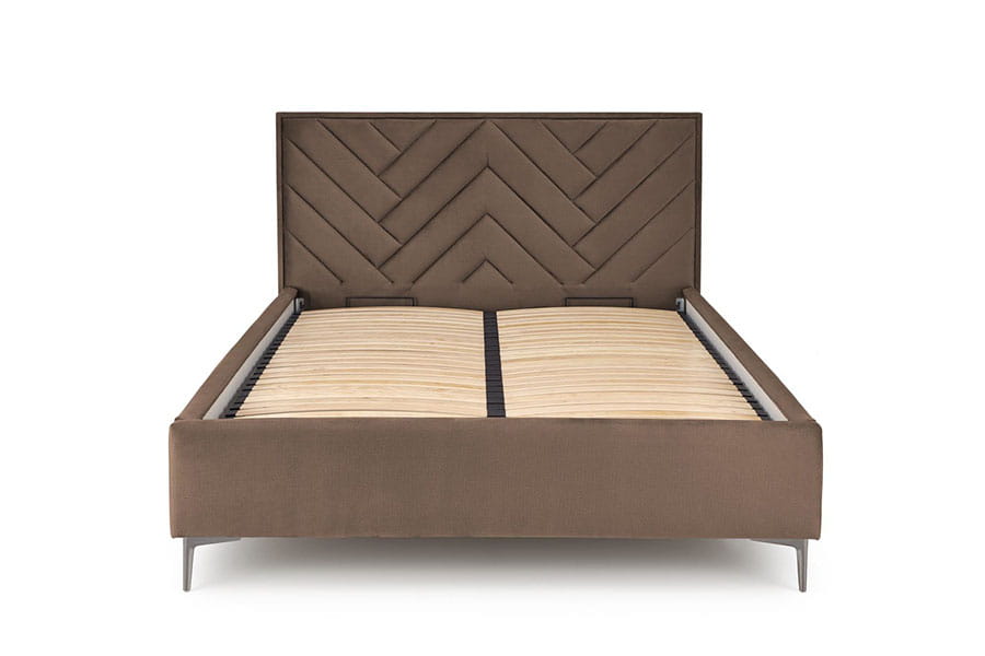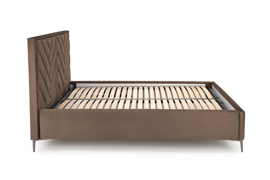 Łóżko Modulo z pojemnikiem na pościel zapewniającym dodatkowe miejsce do przechowywania co jest istotne szczególnie w małym mieszkaniu gdzie każdy schowek jest na wagę złota. Łóżko posiada mocny stelaż pod materac, który podnosimy dzięki zastosowaniu podnośników. Odstęp między listwami stelaża to tylko 6cm. Tak gęste zastosowanie listew sprawia, że jest on odpowiedni pod niemal każdy materac o powierzchni 160x200cm wytrzymując również duże obciążenie.