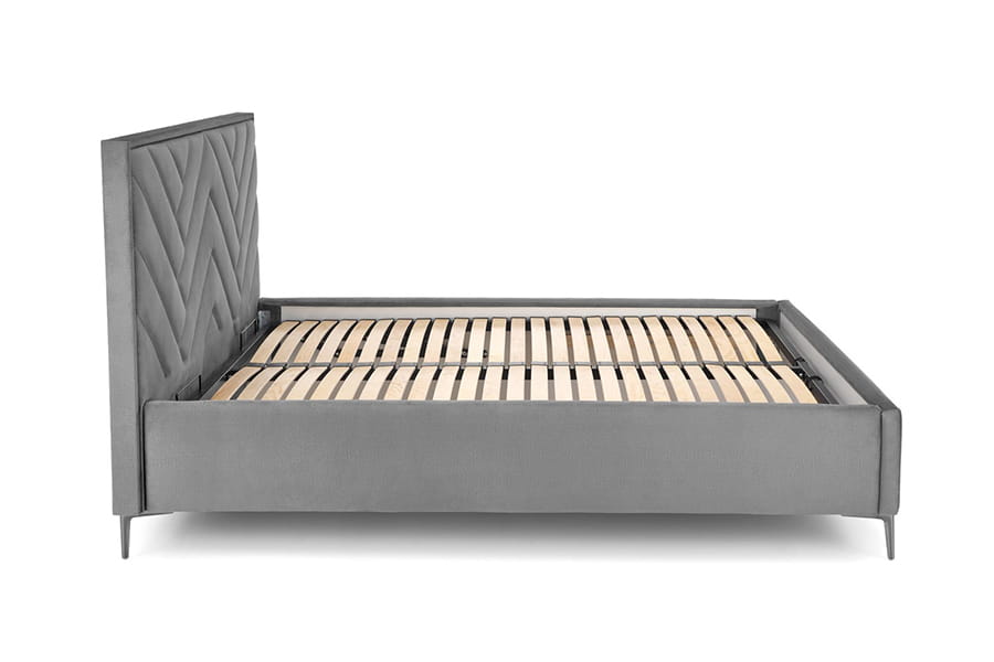 Łóżko Modulo z pojemnikiem na pościel zapewniającym dodatkowe miejsce do przechowywania co jest istotne szczególnie w małym mieszkaniu gdzie każdy schowek jest na wagę złota. Łóżko posiada mocny stelaż pod materac, który podnosimy dzięki zastosowaniu podnośników. Odstęp między listwami stelaża to tylko 6cm. Tak gęste zastosowanie listew sprawia, że jest on odpowiedni pod niemal każdy materac o powierzchni 160x200cm wytrzymując również duże obciążenie.