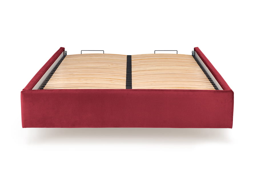 Łóżko Modulo z pojemnikiem na pościel zapewniającym dodatkowe miejsce do przechowywania co jest istotne szczególnie w małym mieszkaniu gdzie każdy schowek jest na wagę złota. Łóżko posiada mocny stelaż pod materac, który podnosimy dzięki zastosowaniu podnośników. Odstęp między listwami stelaża to tylko 6cm. Tak gęste zastosowanie listew sprawia, że jest on odpowiedni pod niemal każdy materac o powierzchni 160x200cm wytrzymując również duże obciążenie.
