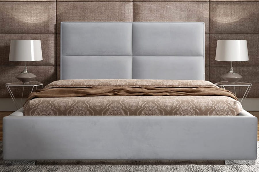 Nowoczesne łóżko tapicerowane Quatro 180x200 z miękkim wezgłowiem. Zastosowana do obicia łóżka tkaniny materiałowe oraz skóry naturalne w modnych kolorach odznaczają się dużą wytrzymałością, ale także i miękkością którą można poczuć, gdy opieramy się o duże pikowane wezgłowie. Teraz przed snem możemy wygodnie oprzeć plecy, by obejrzeć ulubiony serial lub zaczytać się w ciekawej książce. Obita rama łóżka to także bezpieczeństwo dla osób użytkujących łóżko oraz małych dzieci, które nad ranem często zakradają się do łóżka rodziców. Rama łóżka opiera się na niewysokich z tworzywa, niklowanych nóżkach w pięciu rodzajach do wyboru zapewniających dobrą stabilność całej konstrukcji.