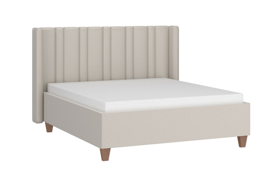 Łóżko tapicerowane ZANNA 140 - nogi: orzech żuławski, zagłówek i rama: jedwabisty beż, tkanina velvet