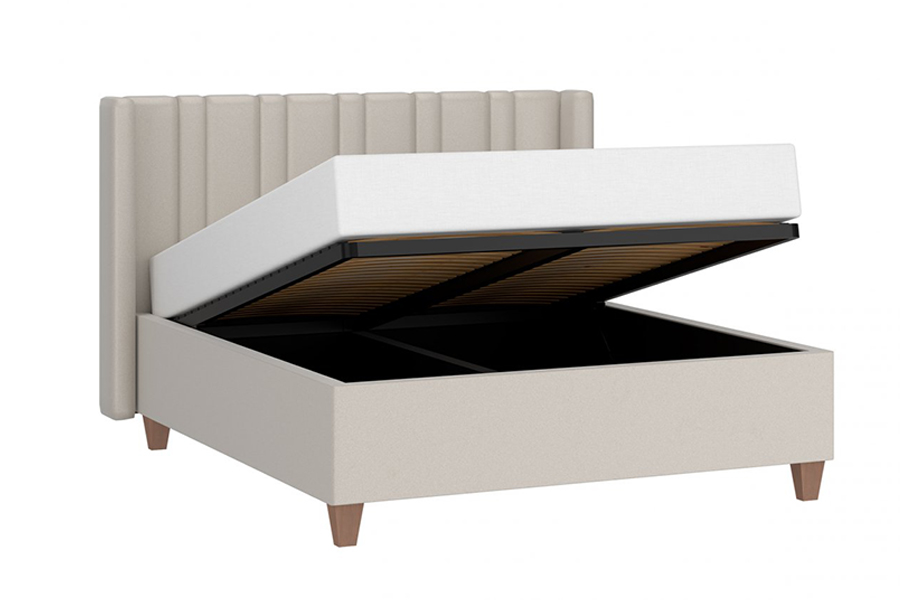 - Solidne łóżko posiada podnoszony stelaż, który zwiększa jego funkcjonalność i pozwala zagospodarować przestrzeń do przechowywania. Do łóżka należy dokupić materac 140x200 cm (pasujące modele: Savio MWMM05, Impresso MWMP06, Elio MWMP 04). Beżowa tkanina obiciowa zapewnia szerokie możliwości zastosowania mebla w sypialni, zaaranżowanej klasycznie, nowocześnie, w stylu vintage, boho, rustykalnym, hampton.