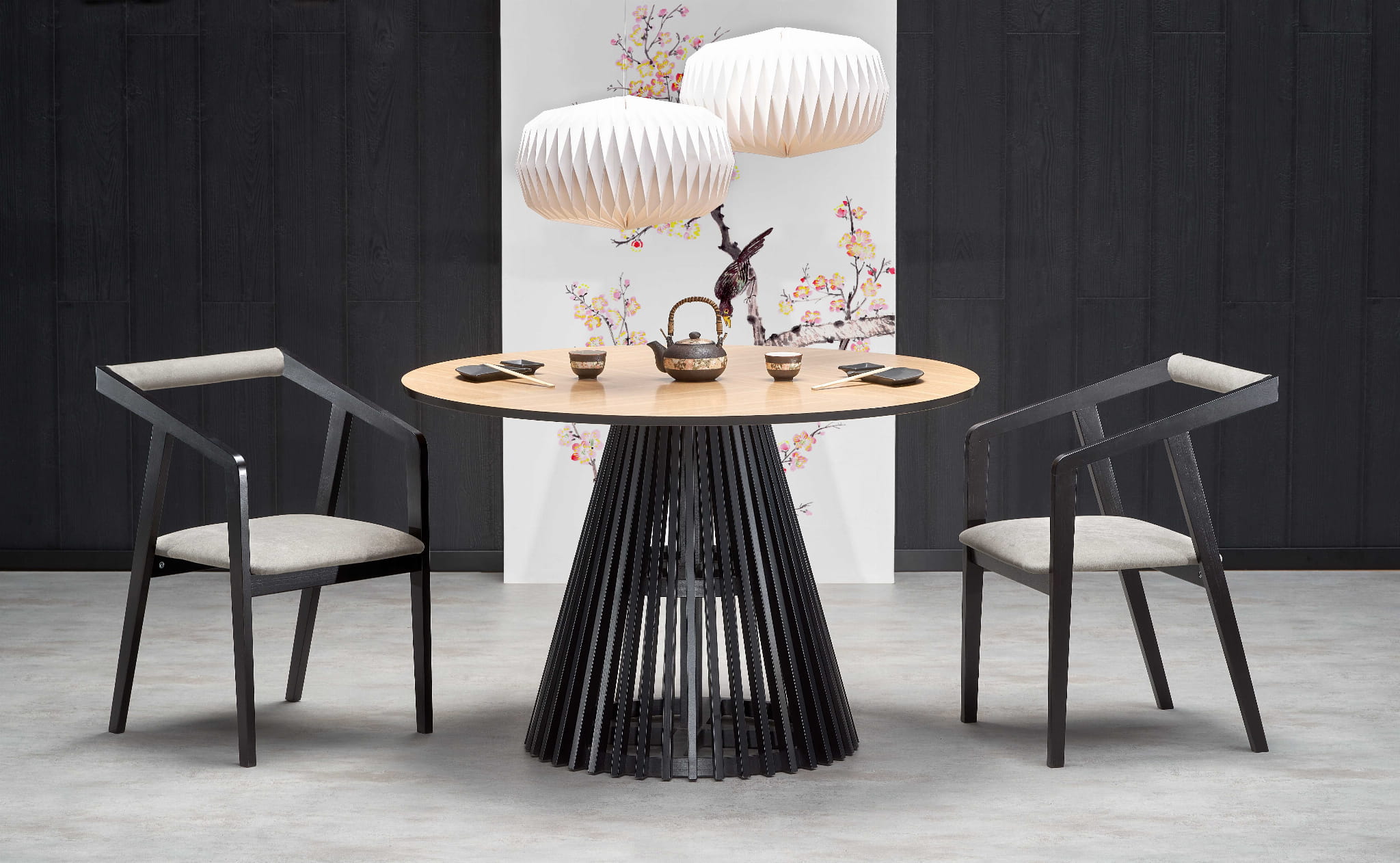 MIYAKI stół blat - dąb naturalny, noga - czarny