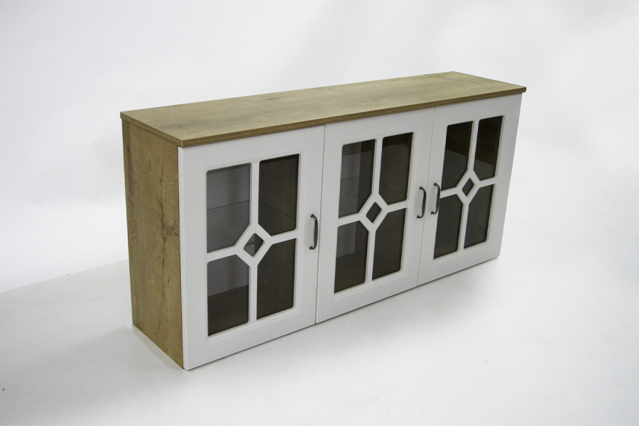 - Nadstawka składa się z części trzydrzwiowej oszklonej oraz z trzech półek