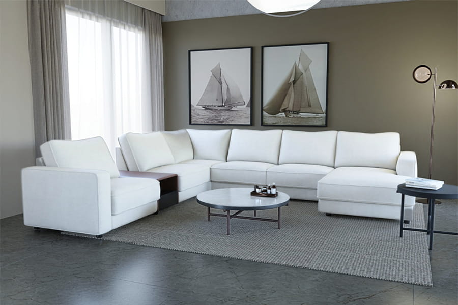 Kolekcję modułową Alexandria cechuje komfortowe wypełnienie z dodatkowym wkładem zawierającym sprężyny typu pocket. Model ten posiada funkcję spania, pojemnik na pościel i dodatkowo można go wyposażyć w elektryczną funkcję RF. Elementem wyróżniającym kolekcję Alexandria jest moduł z wysuwaną szufladą oraz portem USB wykonany ze skóry naturalnej.