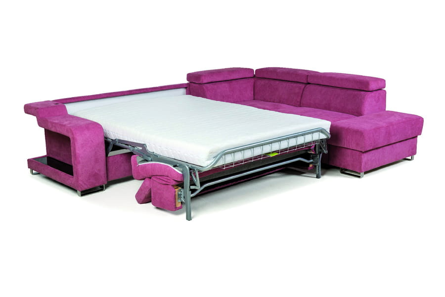 Narożnik Andria to modułowy produkt, który dodatkowo posiada funkcję spania okazjonalnego typu stelaż włoski. Unikatowym rozwiązaniem jest możliwość uniesienia modemu- sofy, poprzez dwie specjalne dźwignie, powodujące wysunięcie systemu czterech kółek, co pozwala na bardzo lekkie i swobodne przemieszczanie sofy po podłodze. Podłokietniki (BcL oraz BcP) wyposażone są dodatkowo w „zestaw oświetleniowy”, składający się z podwójnego gniazda USB (5V) i podświetlenia ledowego RGB z płynną regulacją kolorów za pomocą pilota. Narożnik został wyposażony w pojemniki na pościel. Metalowe nóżki doskonale komponują się z dużą bryłą tworząc mebel idealny do wnętrz zaaranżowanych w nowoczesnym, modernistycznym stylu.