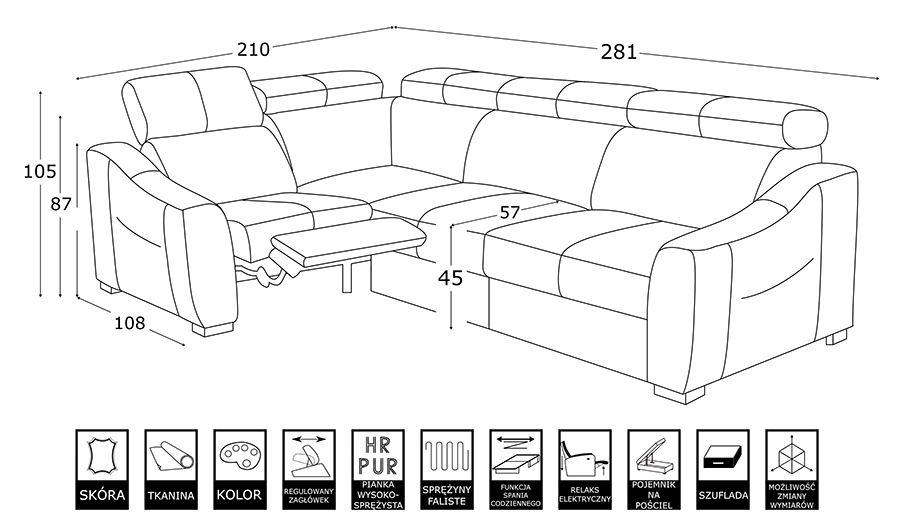 Narożnik ARO ( 1RP L/P+USB+e.narożny+2,5NL/P ) - GKI DESIGN