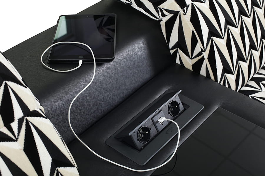 Narożnik ARQUEEN 1,5OTML-1,5N0-MODUŁ STOLIK+ LACOBEL+KUBKI+220V+USB-1,5N0-X1ZPP