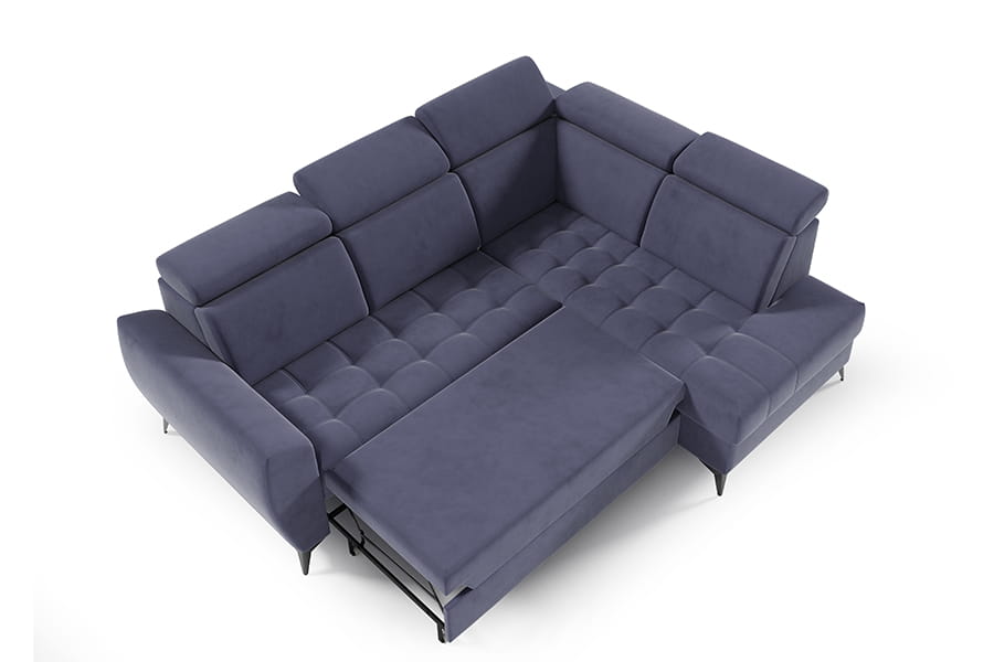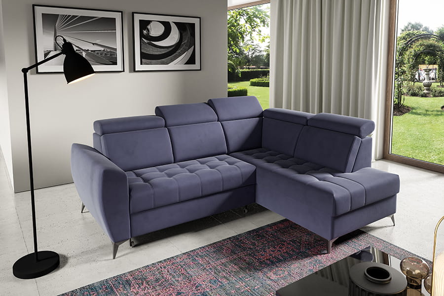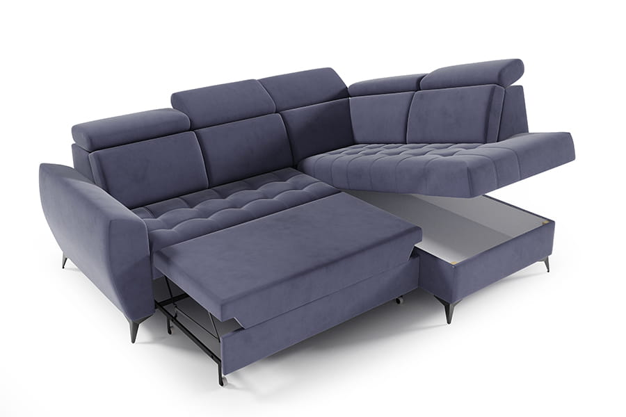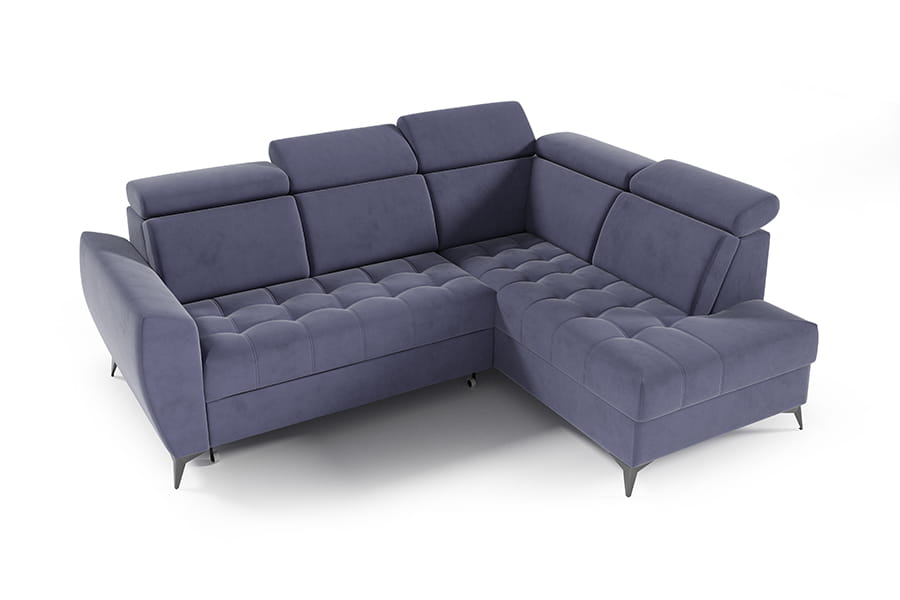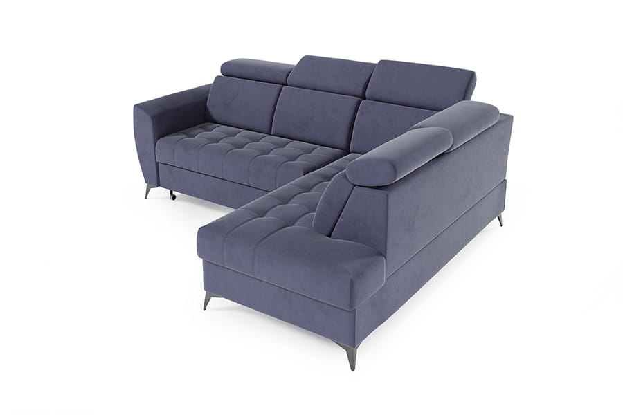 Narożnik Atlanta II to mebel łączący funkcjonalność i nowoczesność. Mebel posiada regulowane zagłówki, co podnosi komfort użytkowania. Narożnik jest wyposażony w pojemnik na pościel, dzięki któremu zyskujemy dodatkowe miejsce do przechowywania wszelkich niezbędnych tekstyliów. Po rozłożeniu narożnika zyskujemy wygodne miejsce do spania. Korpus narożnika osadzony został na wysokich nóżkach, co nadaje mu lekkości. Siedzisko narożnika posiada modne pikowanie. Świetnie sprawdzi się w każdym pomieszczeniu, dzięki swojej funkcjonalności oraz nowoczesności. W celu zapewnienia jak największej wygody w produkcji narożnika wykorzystano piankę wysokoelastyczną oraz sprężyny faliste typu B, dzięki czemu narożnik jest niezwykle komfortowy. Narożnik dostępny w wersji prawo lub lewostronnej