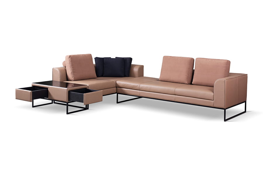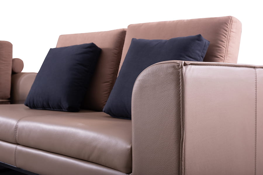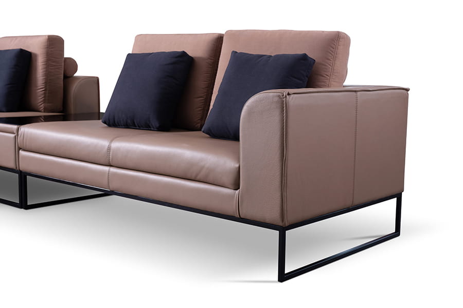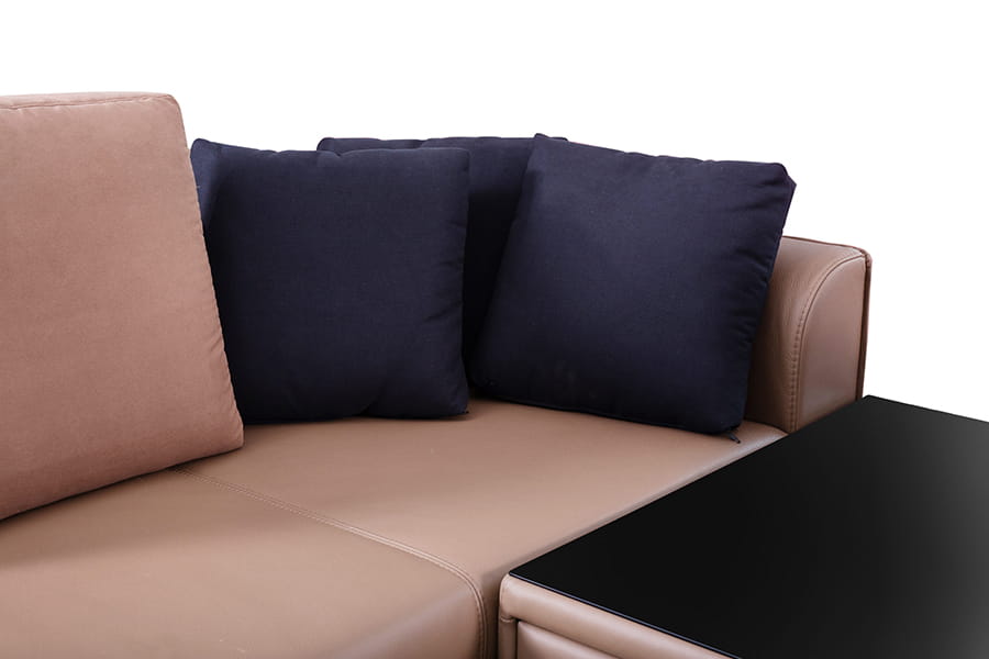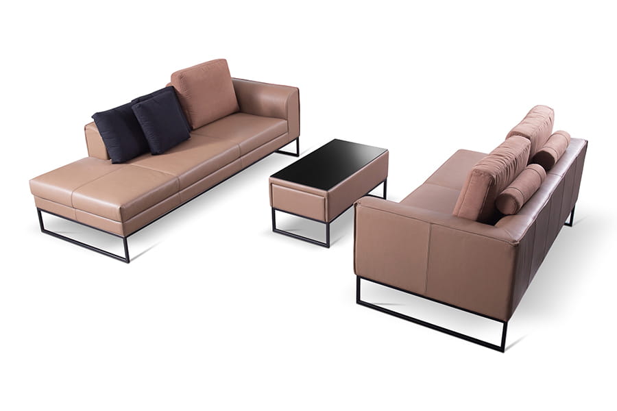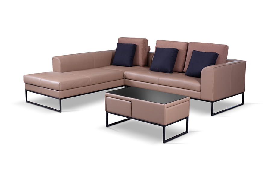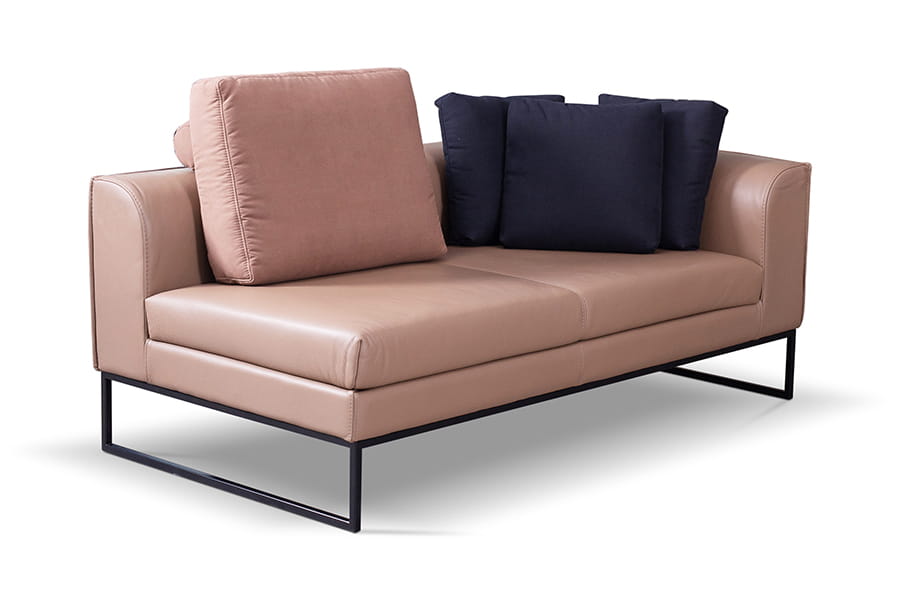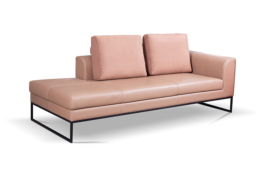 Kolekcja modułowa Aurora, sofa z szezlongiem oraz funkcjonalną ławą to propozycja do przestronnego i nowoczesnego wnętrza. Ciekawa bryła z nisko osadzonym, ale szerokim siedziskiem dzięki smukłym nóżkom prezentuje się lekko i efektownie. I mimo braku funkcji spania duże miękkie poduchy oparciowe dodają modelowi przytulności.