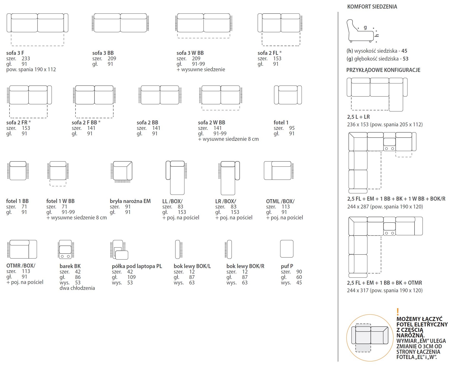 Widoczne tkaniny oraz kolor drewna mają charakter podglądowy i mogą odbiegać od rzeczywistych, wzorniki tkanin i kolorów dostępne są w punktach sprzedaży.