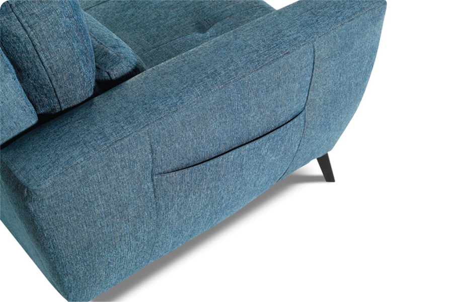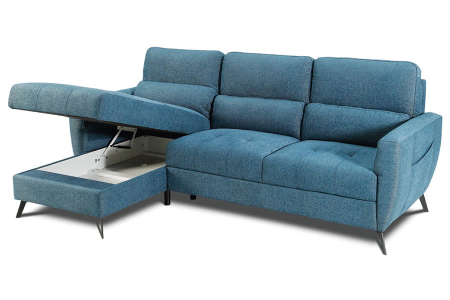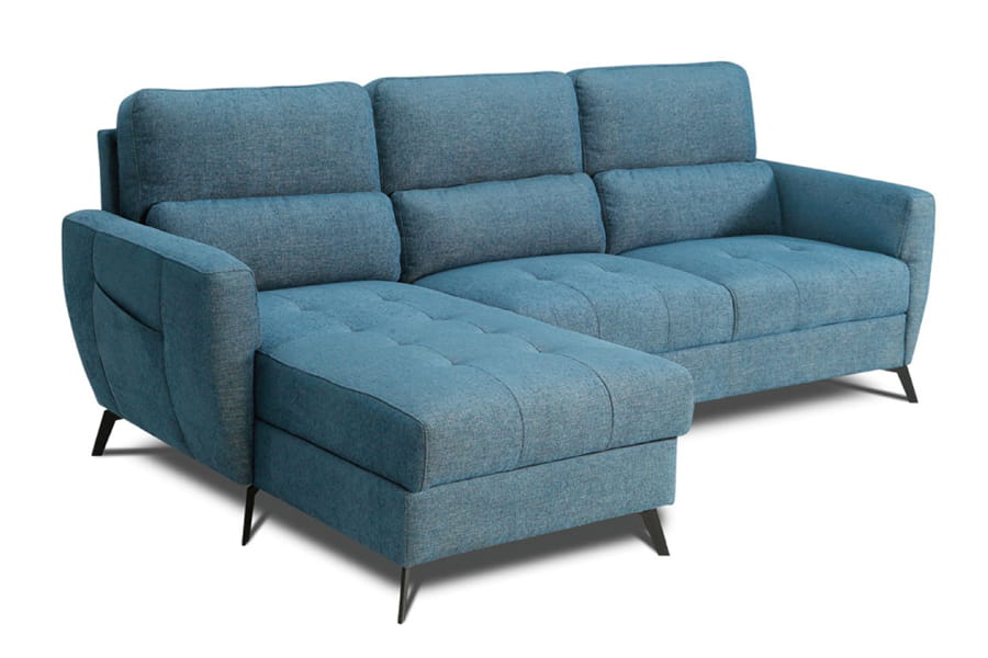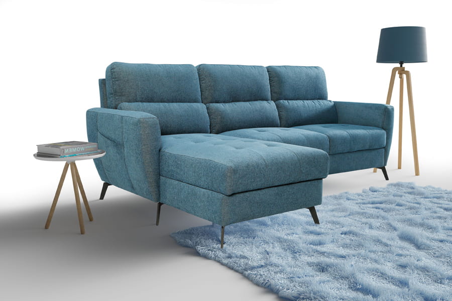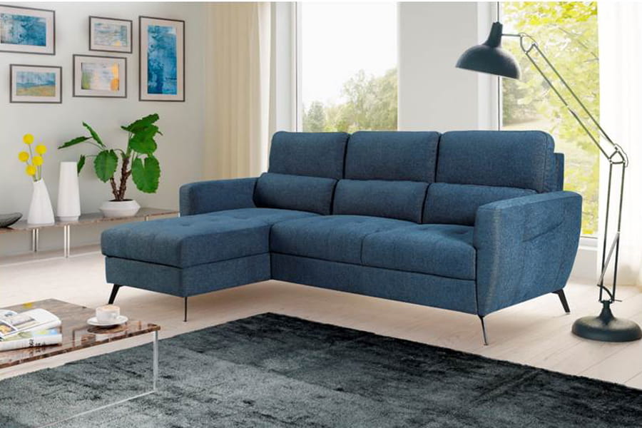 Nowoczesna, prosta linia, kompaktowe wymiary składają się na model niezwykle interesujący. Obok praktycznych aspektów jak funkcja spania czy pojemnik na pościel pojawiają się tutaj dekoracyjne pikowania, które ozdabiają oparcie tworząc ciekawą mozaikę, zmiękczony podłokietnik czy ozdobne płozy. Model dostępny jest w wersji lewostronnej oraz prawostronnej.