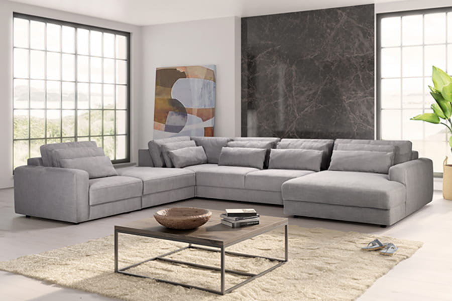 Narożnik BOURBON 1-H-EV3-EXT-2RF-M.REC + zestaw poduszek wysokich i niskich - BYDGOSKIE MEBLE