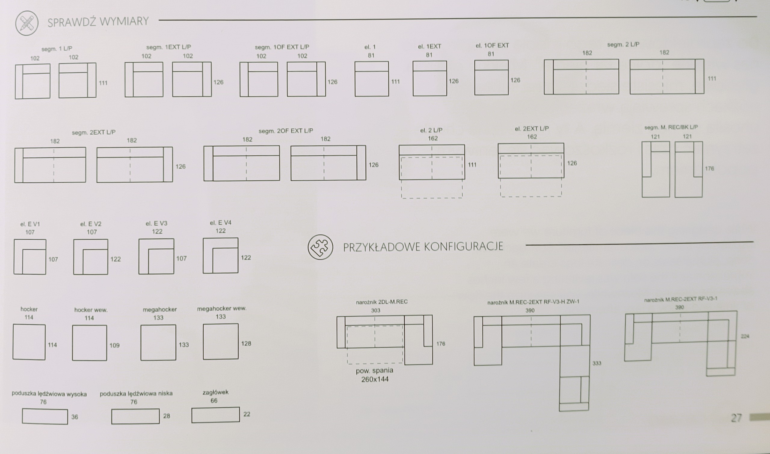 - narożnik bez funkcja spania i pojemnika na pościel