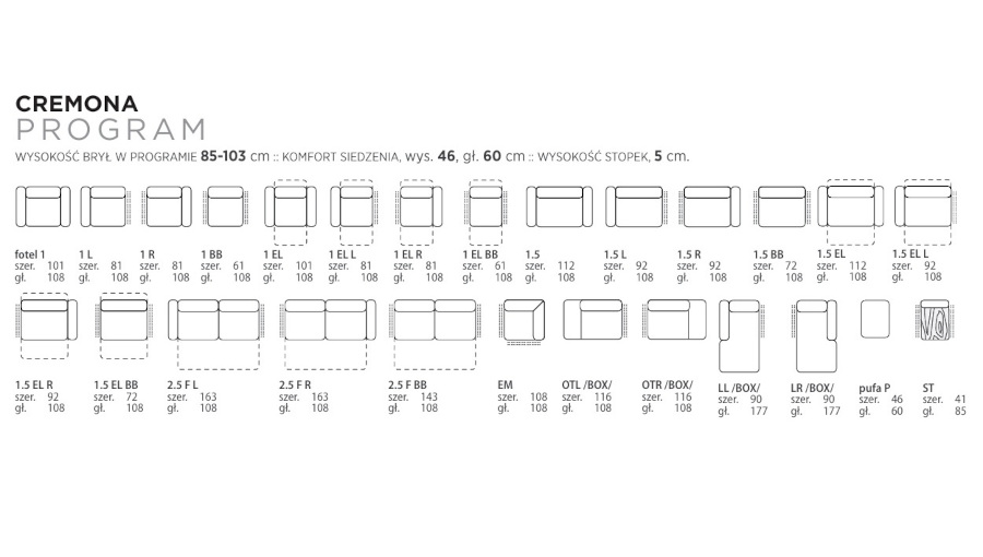 Narożnik CREMONA 2,5FL-EM-1BB-ST-1ELR - FENIKS MEBLE