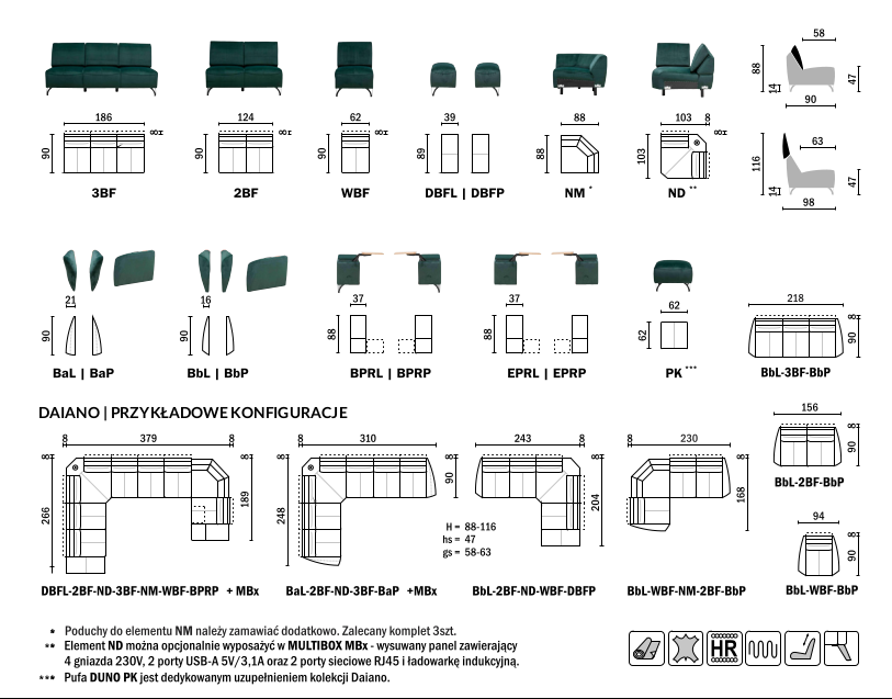 Narożnik DAIANO Bbl-2BF-ND-WBF-DBFP Meblomak