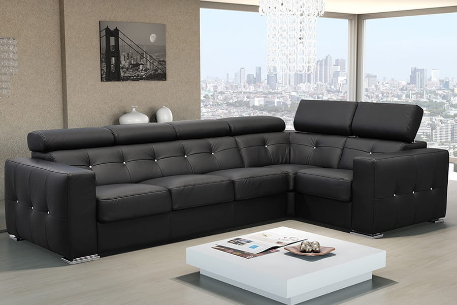 - narożnik tapicerowany w tkaninie lub skórze naturalnej
