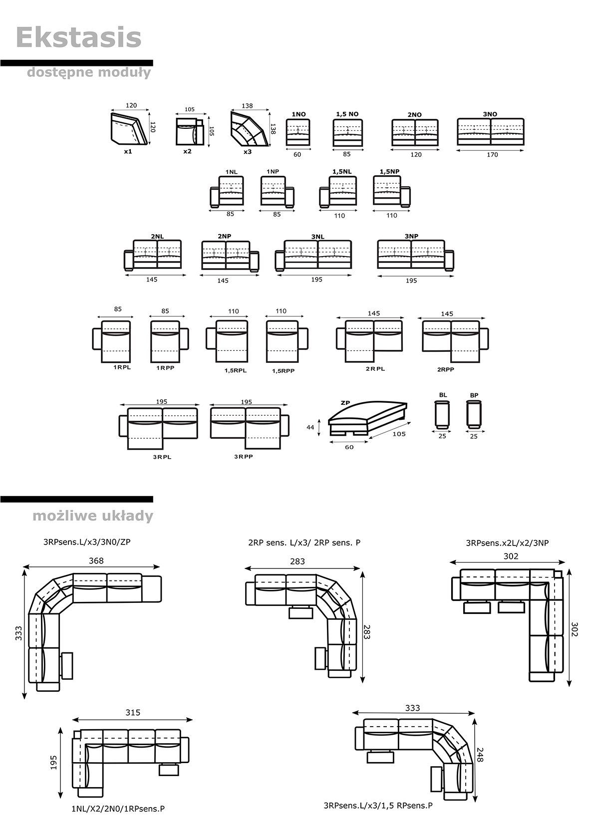 Narożnik EKSTASIS ( 3RL/P+RZ1 sensor+X3+1,5RL/P+RZ1 sensor+akumulator x2 ) - GKI DESIGN