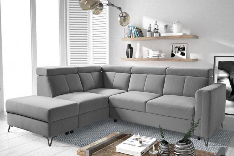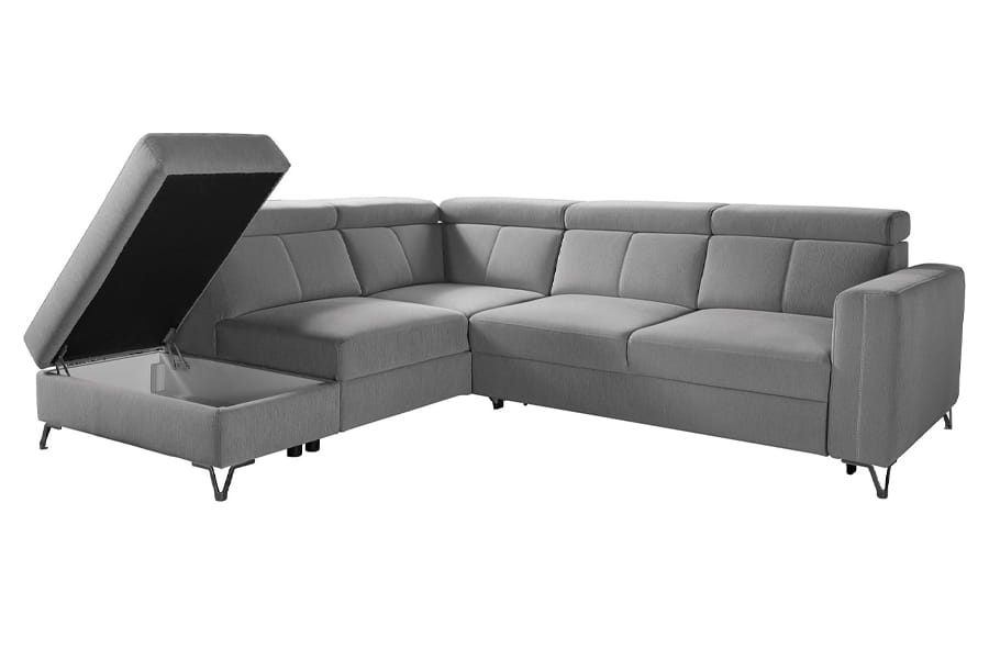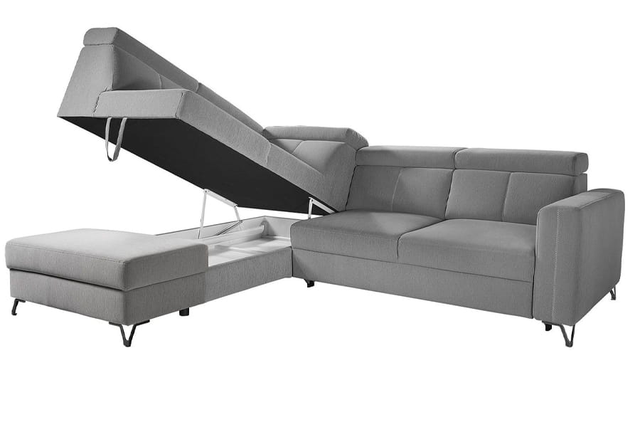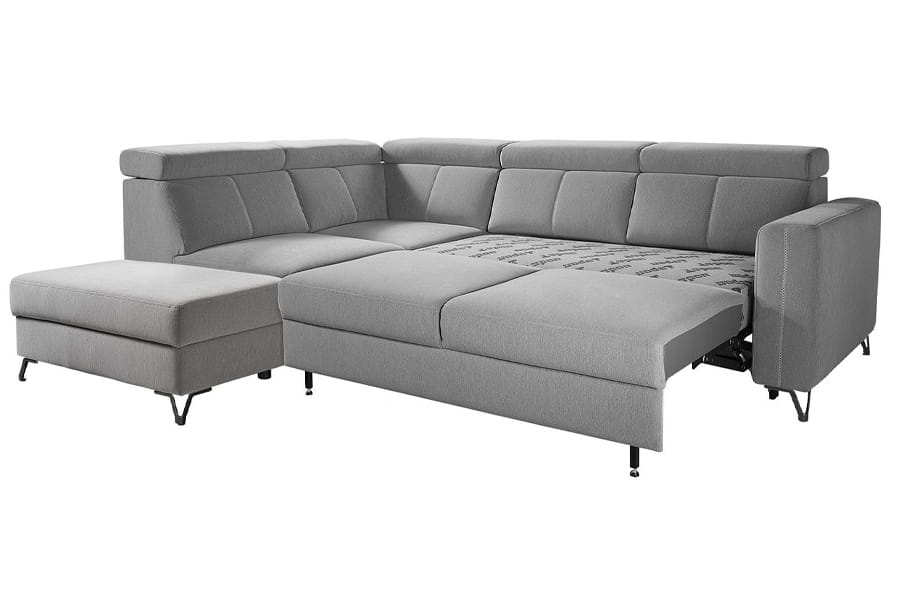 - narożnik z funkcją spania ( bardzo prosty system rozkładania stosowany w narożnikach. Jego atutem jest łatwe rozkładanie spania “jednym ruchem”. Rozkładanie polega na zdjęciu ewentualnych poduch oparciowych, a następnie uniesienie siedziska do góry i opuszczeniu w przód. Równocześnie, samoczynnie spod siedziska, wysuwa się druga powierzchnia do spania. Jest to przemyślane rozwiązanie ponieważ nie uszkadza podłogi podczas składania i rozkładania mebla. Nie trzeba składać oparcia, a mechanizm jest bardzo praktyczny i łatwy w obsłudze. )