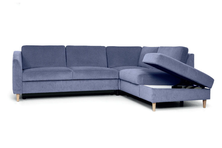 - narożnik modułowy z funkcją spania ( typu „DELFIN” jest mechanizmem stosowanym zazwyczaj w narożnikach. Ze względu na brak możliwości połączenia funkcji z pojemnikiem na pościel, pojemnik ten znajduje się pod drugą częścią narożnika. Rozłożenie powierzchni spania polega na wysunięciu, za pomocą specjalnego uchwytu, zamontowanego na rozsuwanej konstrukcji materaca, który prostym ruchem zrównuje się z siedziskiem mebla. Tak skonstruowana funkcja gwarantuje stabilny i wygodny wypoczynek. )
