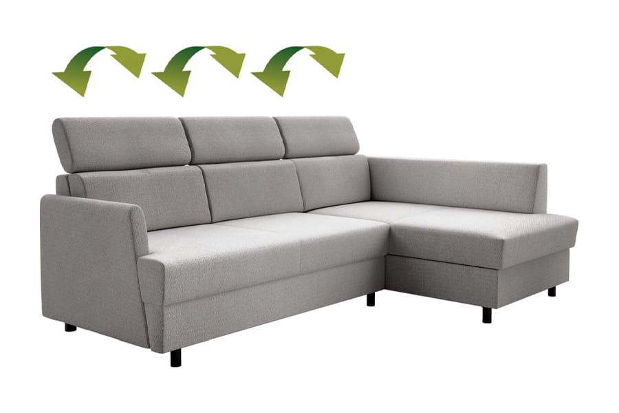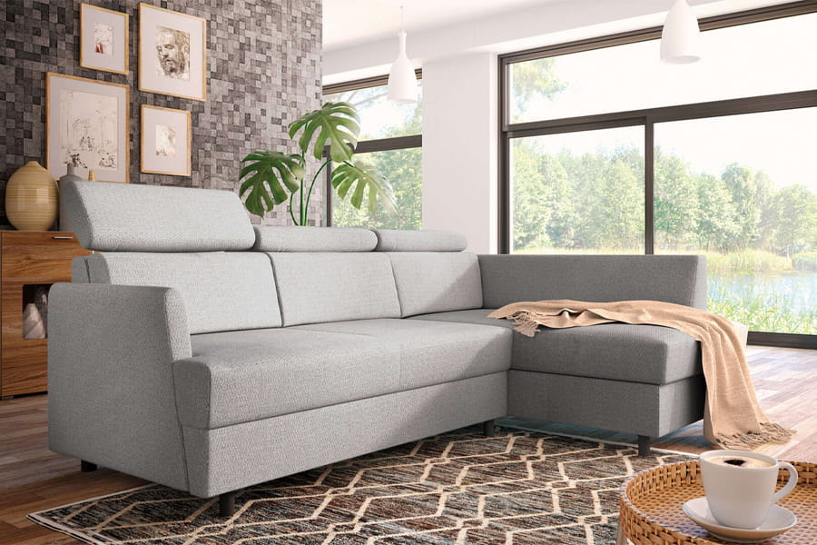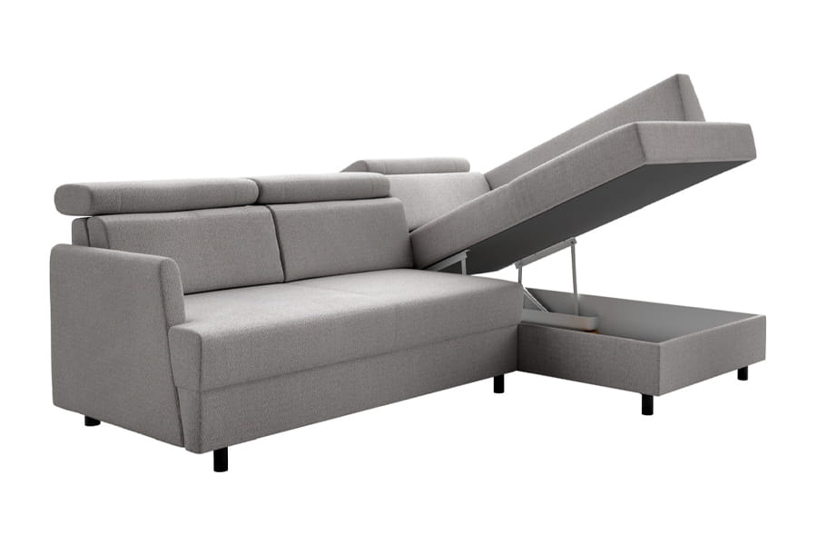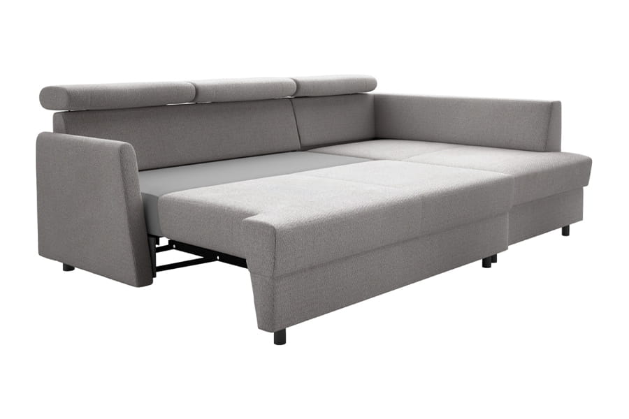 - narożnik z funkcją spania ( bardzo prosty system rozkładania stosowany w narożnikach. Jego atutem jest łatwe rozkładanie spania “jednym ruchem”. Rozkładanie polega na zdjęciu ewentualnych poduch oparciowych, a następnie uniesienie siedziska do góry i opuszczeniu w przód. Równocześnie, samoczynnie spod siedziska, wysuwa się druga powierzchnia do spania. Jest to przemyślane rozwiązanie ponieważ nie uszkadza podłogi podczas składania i rozkładania mebla. Nie trzeba składać oparcia, a mechanizm jest bardzo praktyczny i łatwy w obsłudze. )