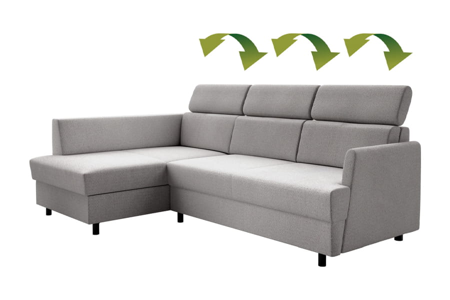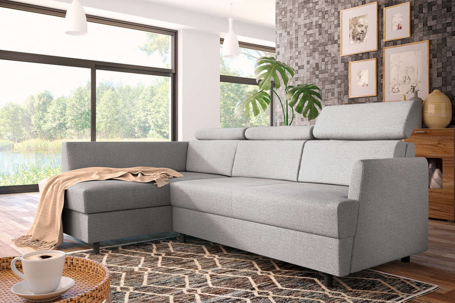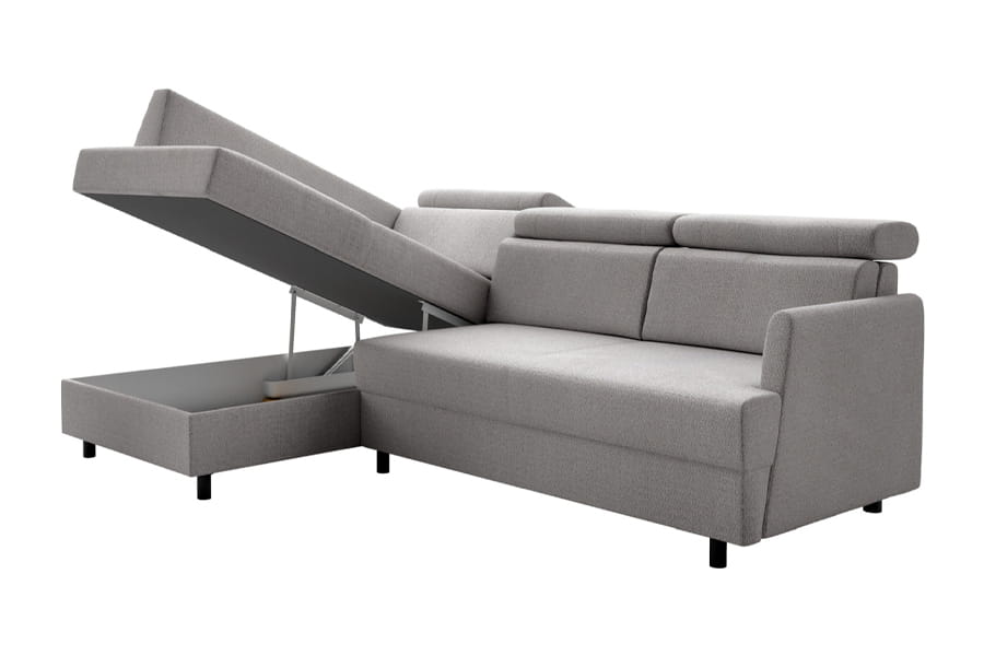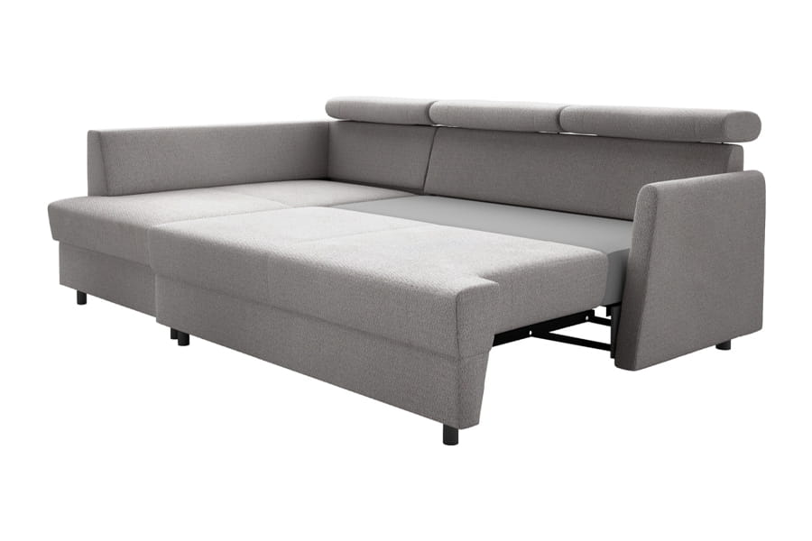 - narożnik z funkcją spania ( bardzo prosty system rozkładania stosowany w narożnikach. Jego atutem jest łatwe rozkładanie spania “jednym ruchem”. Rozkładanie polega na zdjęciu ewentualnych poduch oparciowych, a następnie uniesienie siedziska do góry i opuszczeniu w przód. Równocześnie, samoczynnie spod siedziska, wysuwa się druga powierzchnia do spania. Jest to przemyślane rozwiązanie ponieważ nie uszkadza podłogi podczas składania i rozkładania mebla. Nie trzeba składać oparcia, a mechanizm jest bardzo praktyczny i łatwy w obsłudze. )