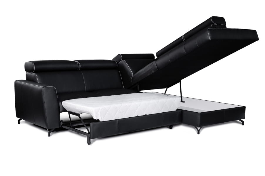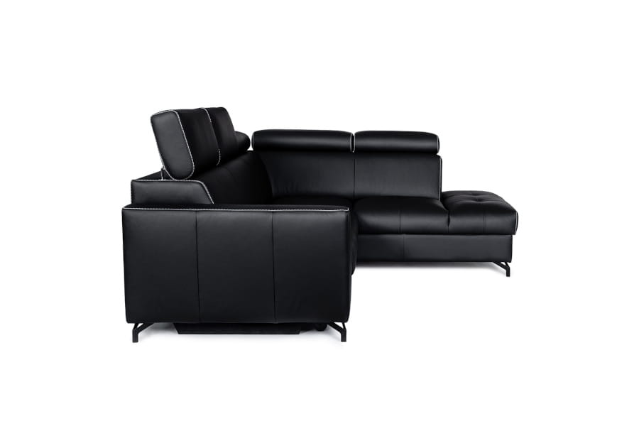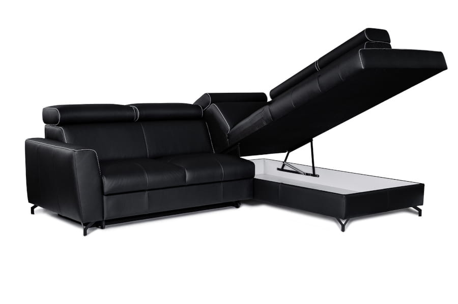 Narożnik G-01 to mebel, który oprócz nowoczesnego, ekskluzywnego wyglądu oferuje funkcjonalności takie jak możliwość rozkładania do spania oraz schowek do przechowywania pościeli. Elegancka bryła stojąca na metalowych nóżkach ,dzięki możliwości rozłożenia zagłówków oferuje w pełni ergonomiczne podparcie pleców i głowy. Narożnik występuje w wersji lewostronnej oraz prawostronnej.