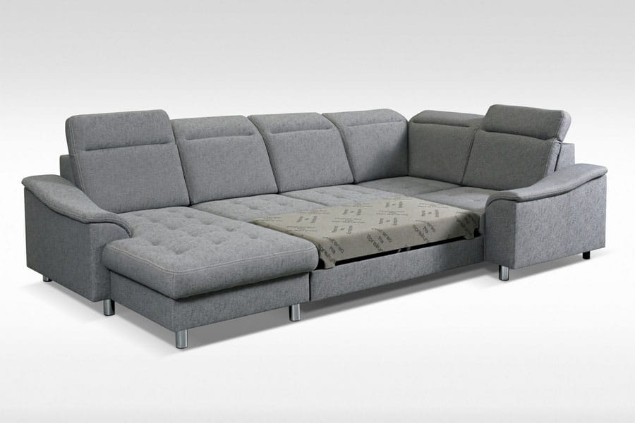 - narożnik z funkcją spania ( typu „DELFIN” jest mechanizmem stosowanym zazwyczaj w narożnikach. Ze względu na brak możliwości połączenia funkcji z pojemnikiem na pościel, pojemnik ten znajduje się pod drugą częścią narożnika. Rozłożenie powierzchni spania polega na wysunięciu, za pomocą specjalnego uchwytu, zamontowanego na rozsuwanej konstrukcji materaca, który prostym ruchem zrównuje się z siedziskiem mebla. Tak skonstruowana funkcja gwarantuje stabilny i wygodny wypoczynek. )